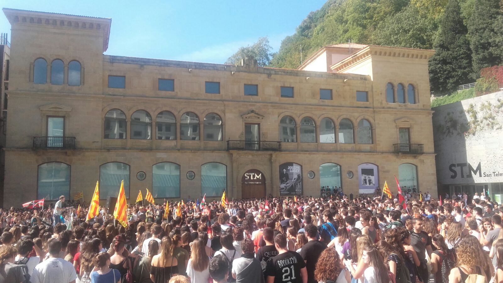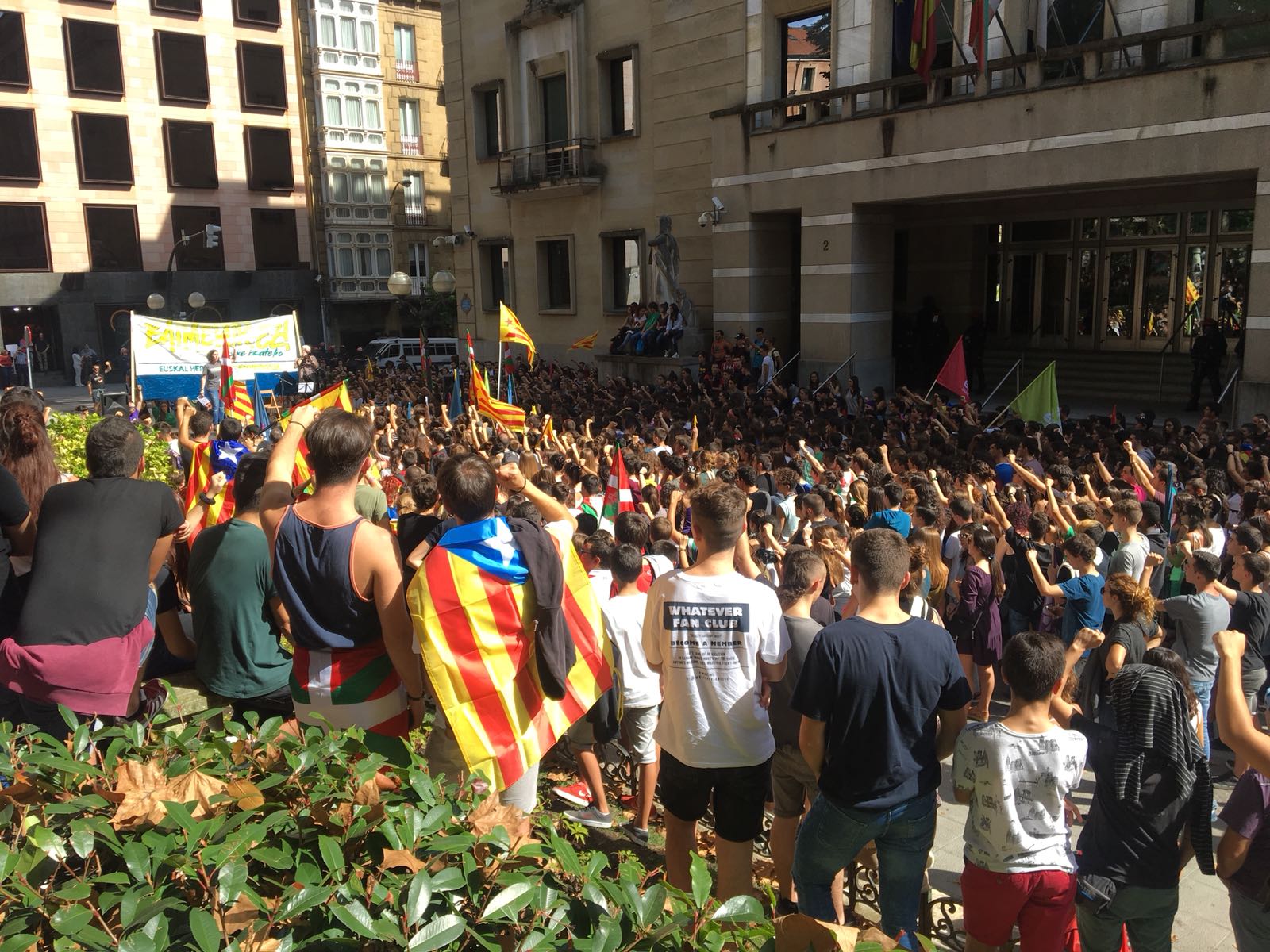 ELAS, LAB, ESK, Steilas eta Hiru sindikatuek deituta ehunka lagun bildu dira Hego euskal Herriko lau hiriburuetan Kataluniako autodeterminazio erreferendumari babesa eman eta herrialde hartan herritarrak jasaten ari diren errepresioa salatzeko.