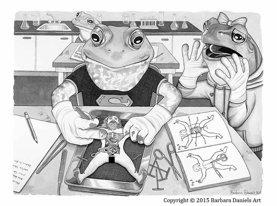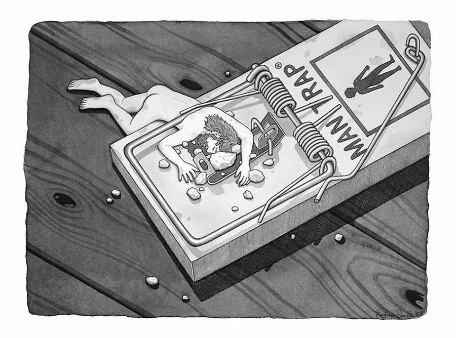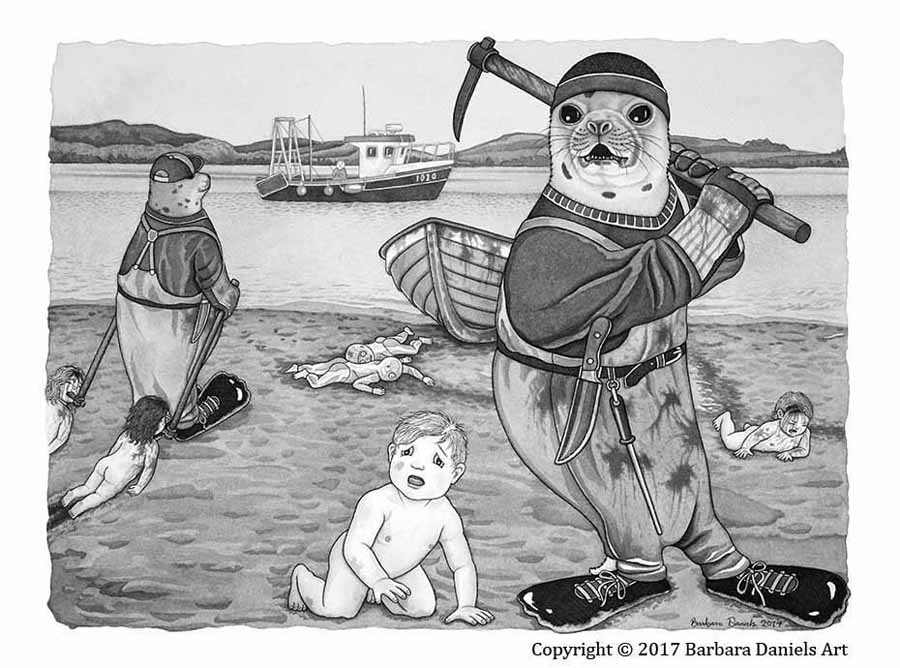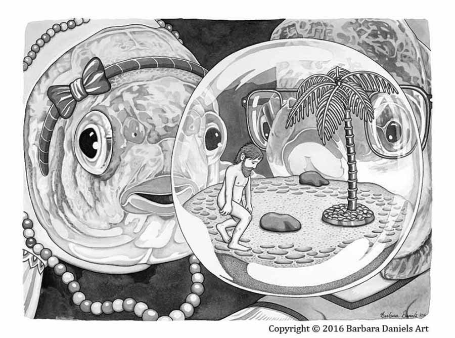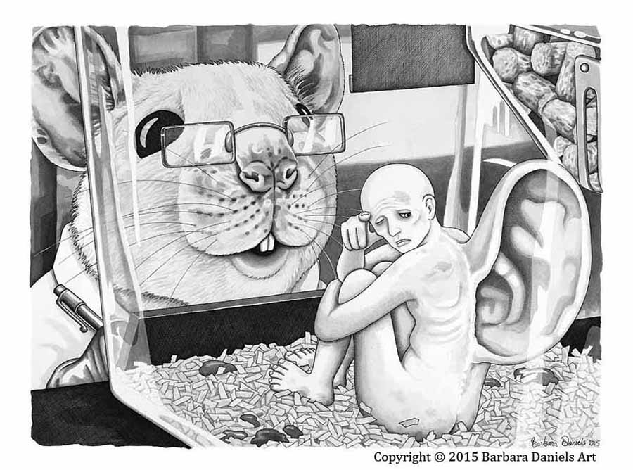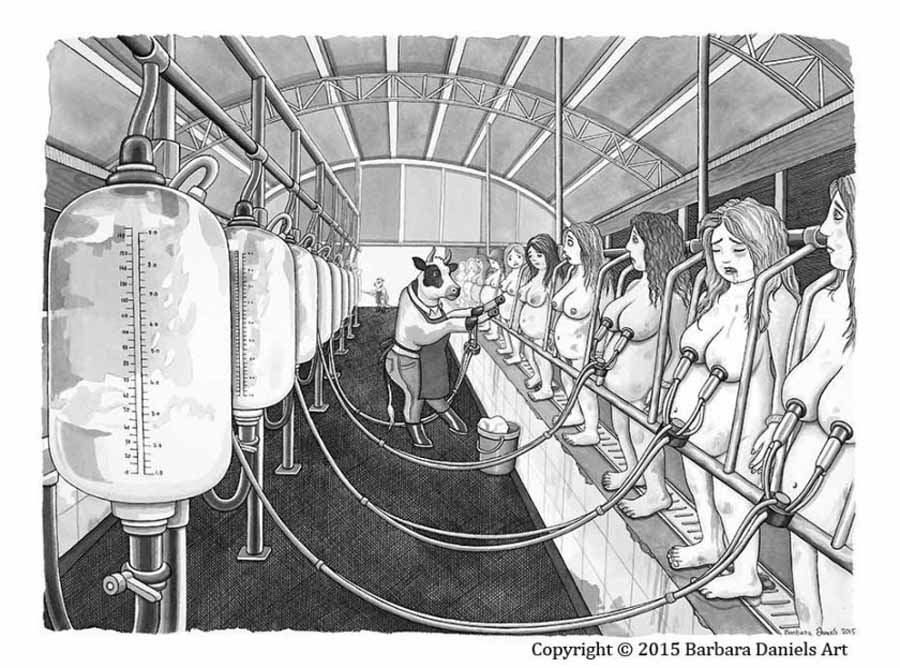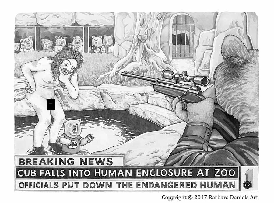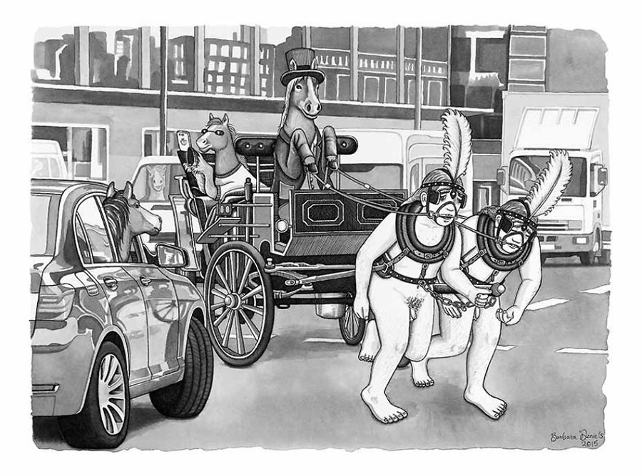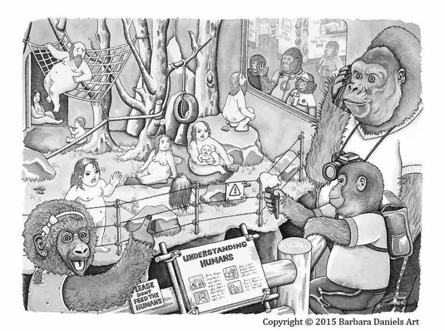 Edo alderantziz, animaliak gizakiak bezala. Horixe da Barbara Daniels irlandar artistak egin duen irudimen ariketa. Animaliekin dugun harremana eta portaerari buelta eman eta horrela, ispilu aurrean jarri gaitu gizakiok. Eta emaitza ikusita, egia esan, egin dituen marrazki batzuk hotzikara eragiten dutela onartu beharra dago.