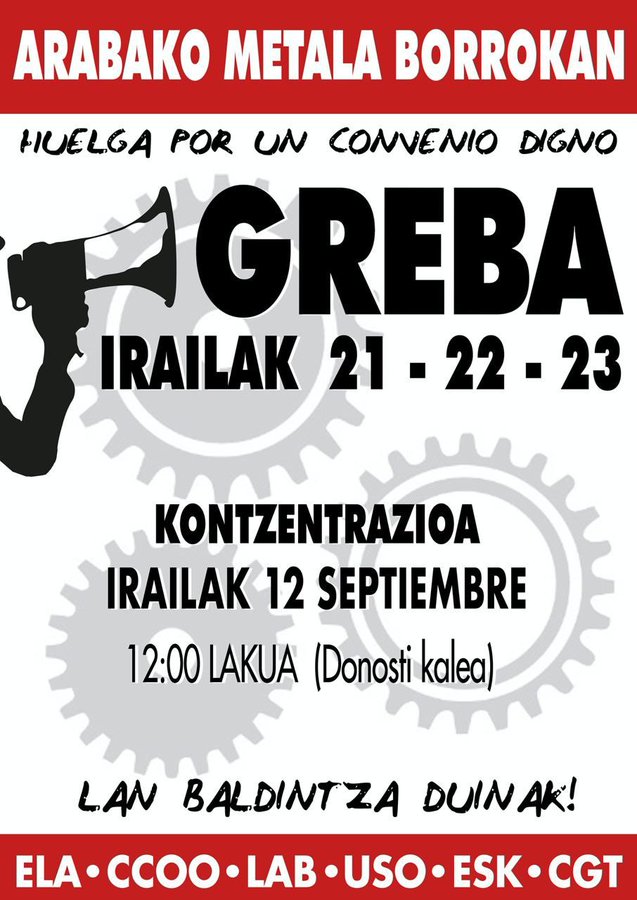 Sindikatuek irailaren 21erako 22rako eta 23rako egindako greba deialdiak mantenduak dira. SEA patronalaren jarrera salatu du ELA, LAB, CCOO, USO, ESK eta CGT sindikatuek osatutako plataformak.