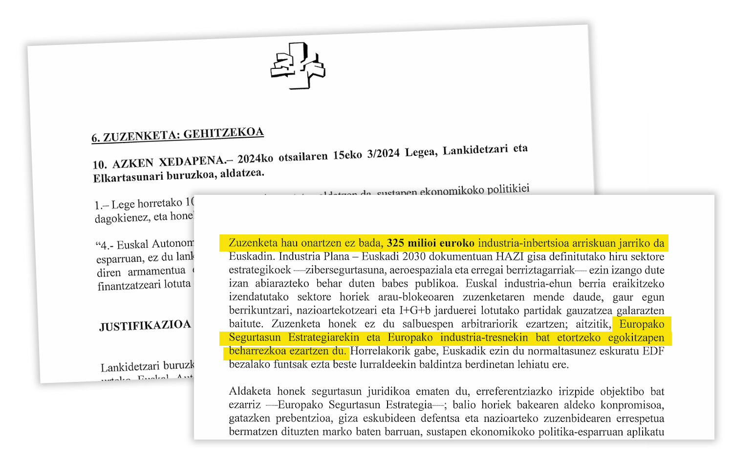 Eusko Legebiltzarrean asteartean onartutako 2026ko EAEko aurrekontuetan, EAJk eta PSE-EEk zuzenketa bat egin dute azken unean, entitate publikoek armak ekoizten dituzten enpresekin kolaboratu ahal izateko. Elkarte antimilitaristek salatu dute 325 milioi euro bideratuko direla armagintzara modu horretan, gastu sozialetara beharrean.