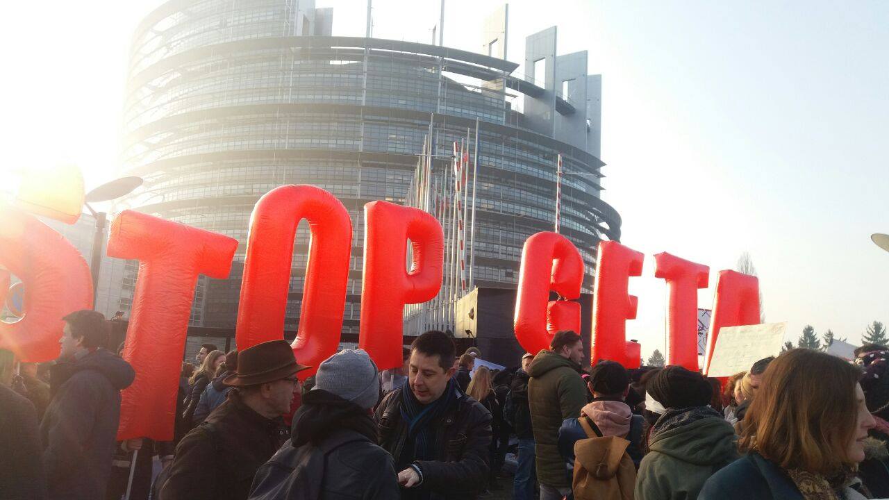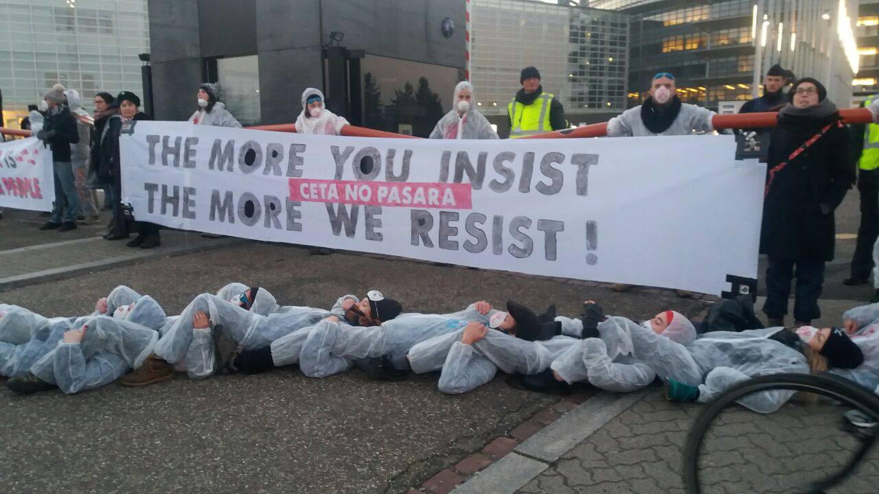 Euskal Herriko parlamentuetan ordezkaritza duten alderdietatik, CETAren alde bozkatu dute ondorengo alderdiek bozkatu dute: EAJ, PP eta PSOE. Eta aurka: EH Bildu, Podemos eta Equo. Goizean 150 ekintzailek Europako Parlamentuko sarrera blokatu dute Estrasburgon. TTIP Game Over Facebookeko orrian azaldu dutenez, lortu nahi zuten eurodiputatuak autoetatik jaitsi eta CETAren alde bozkatzea herritarrak zapaltzea zela irudikatzea.
