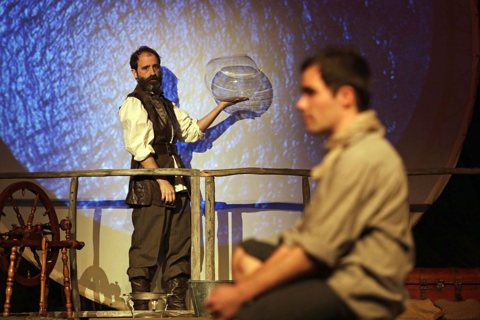 Argiak itzali eta fokuak piztean, Getariako marinelaren balentriez ezezik, haren ekintza kriminalez mintzo den antzezlanarekin egin nuen topo. Magallaesen espedizio famatutik hiru urtera, 1525ean, Indonesiako Molukak uharteetarantz abiatu zen ontzian kokatzen da istorioa, Elkano (Iñigo Araburu) hil urren eta eldarnioak hartuta dagoela. Ondoan du Juan de Zubileta (Xabi Ortuzar), Magallaesen espediziotik bizirik itzulitako itsas-mutil barakaldarra, lehorreratzean izango duen bizimodu erosoarekin amets egin eta aurreko espedizioaren heroikotasuna etenik gabe azpimarratzen duena. Baina Elkanok, bere ekintza ilunenak aitortuz, Zubiletaren kontakizunak belzten ditu: bidean aurkitutako herrialdeen zapalkuntza, bertokoen hilketak, esklabotza, bortxaketak… Jaungoikoaren izenean krimenak egin zituztela, itsasoratutako bost ontziak gerrarako tresneriaz gainezka zihoazela eta Mediterraneo itsasoko urak, bere eskuak bezala, odolez tindaturik daudela aitortzen du marinelak, bere azken hatsetik hurbil.