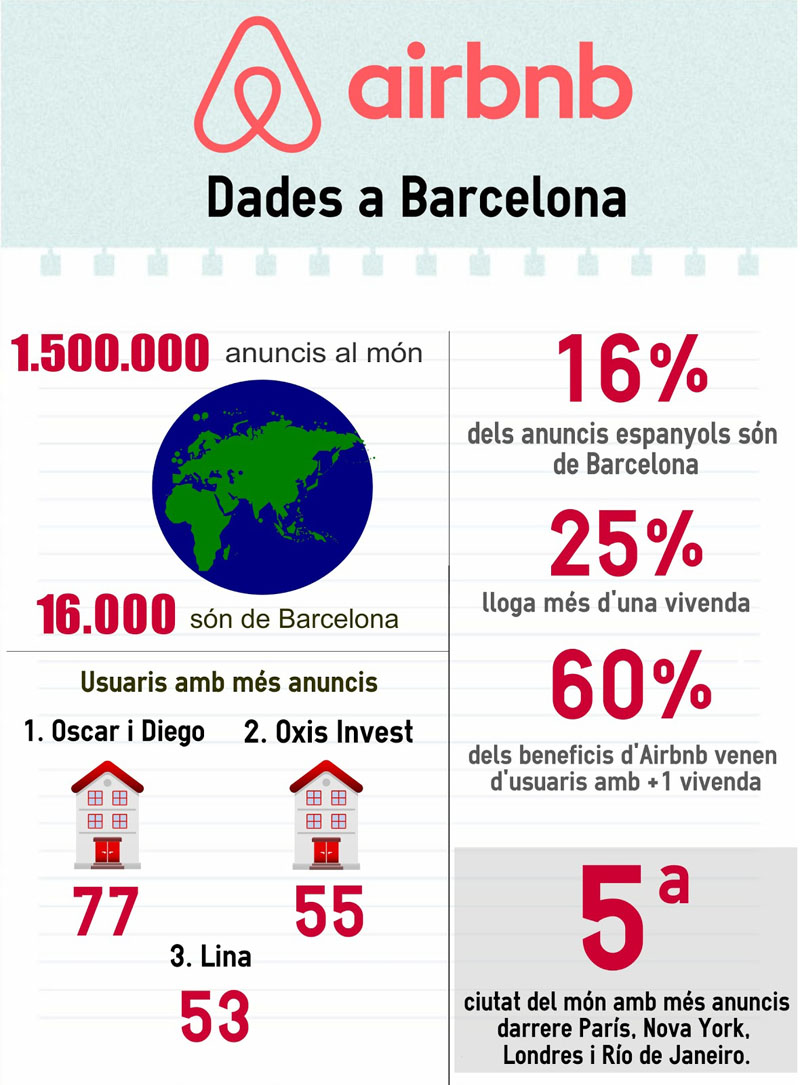Airbnb bezalako plataformek legez kanpoko turista pisuen negoziorako erraztasunak ematen dituztela salatu dute behin baino gehiagotan Bartzelonako bizilagun mugimenduek. Izan ere, plataforma hauetan gehiago dira tasak ordaindu gabeko negozioa bilatzen duten sare eta jabeak, “jendea ezagutu eta hilabete amaierara iristeko sos batzuk lortu” nahi dituzten bizilagunak baino.
