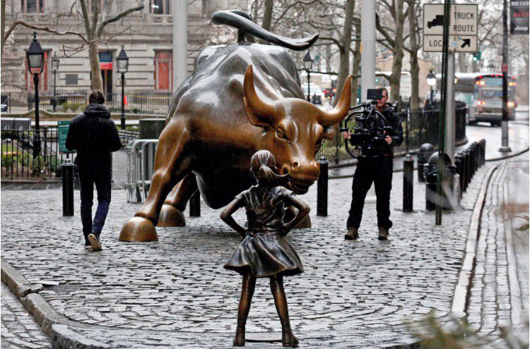 Beldurrik ez duen neskato baten estatua jarri dute Washingtonen Wall Street eta maskulinitatea sinbolizatzen dituen zezenaren aurrean.