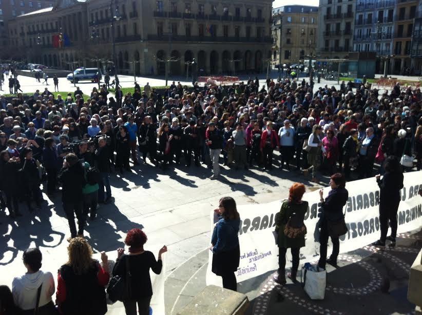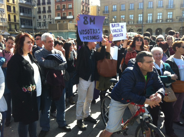 Nazioarte mailako Emakumeen Geldialdi deiarekin bat eginez, bilkura izan da 12:00etan Iruñeko Gazteluko Plazan. Ehunka pertsona bildu da bertan, batez ere emakumezkoak. Hala, Nafarroako Koordinadora Feministak bat egin du munduko emakumeek jasaten duten biolentzia “soziala, legezkoa, sexuala, politikoa, morala eta ahozkoaren” salaketarekin. Ainhoa Aznarez Nafarroko Legebiltzarreko lehendakaria ere bertan izan da.