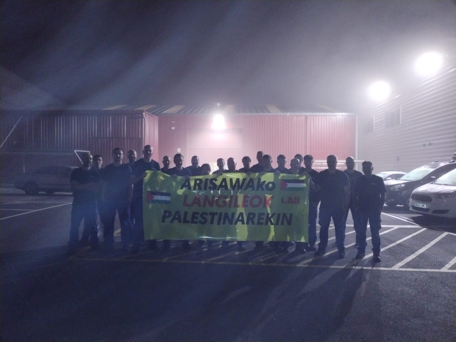 Zamudioko eta Beasaingo CAFen lantokietan ere gaueko txandetan hasi da Palestinaren aldeko aldarria. LABen esanetan Beasainen "erabateko jarraipena" izan du eta esku-orriak banatu eta pankartak eskegi dituzte lantokian. Goizaldean palestinar bandera bat jartzen ari zirela ertzainek hainbat kide identifikatu dituztela salatu du sindikatuak.
