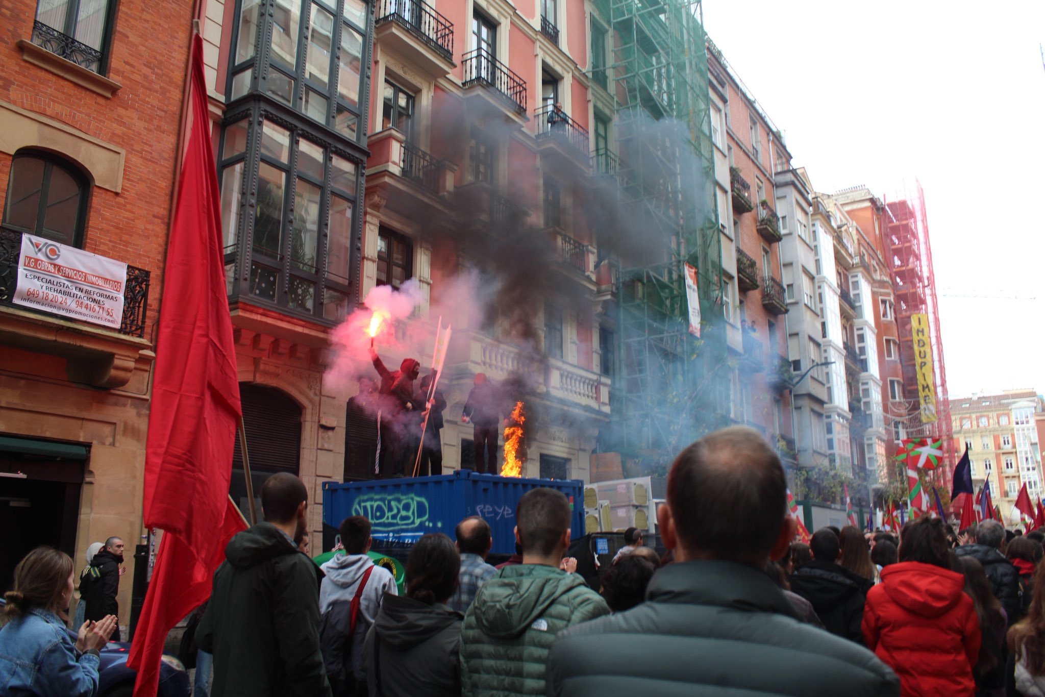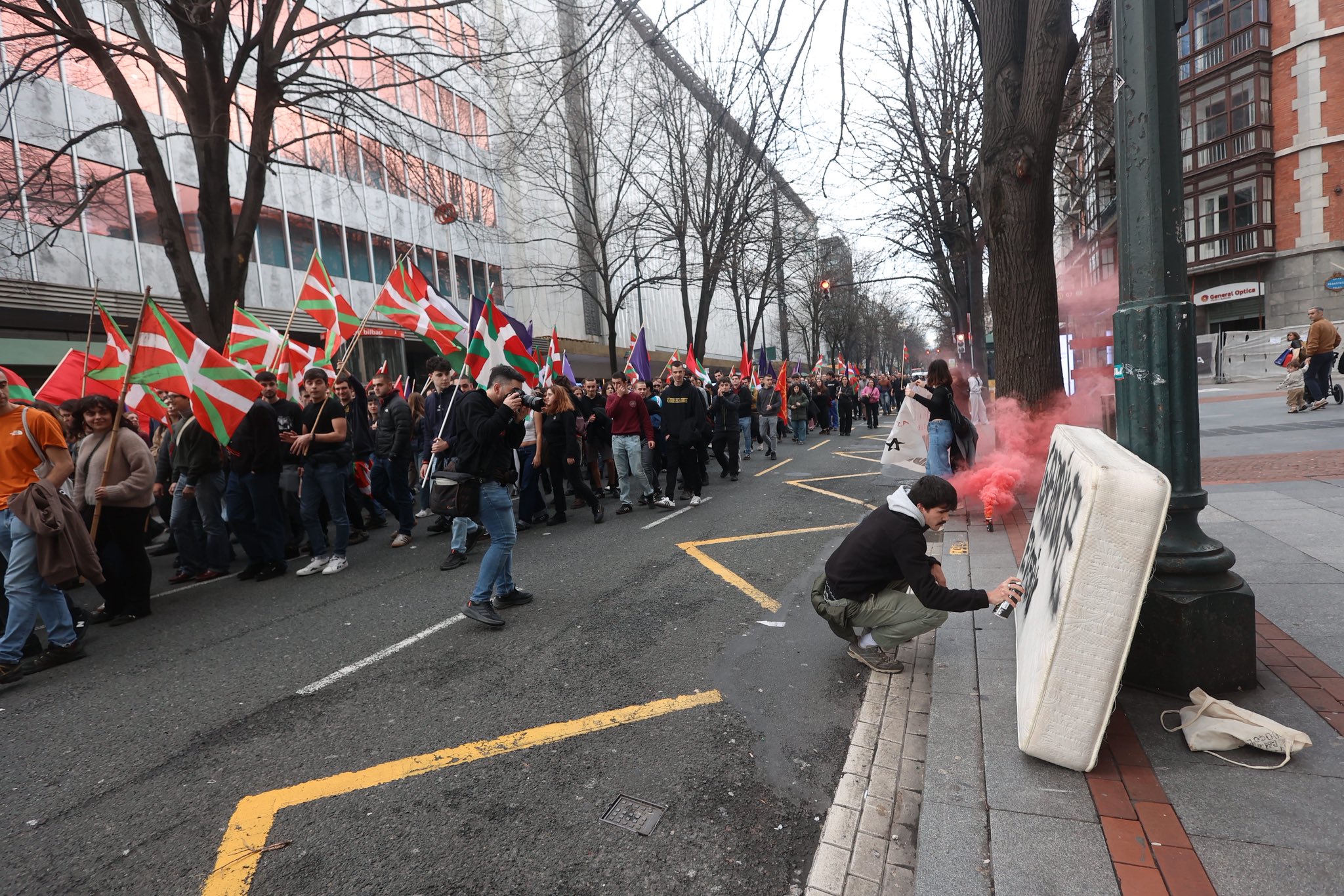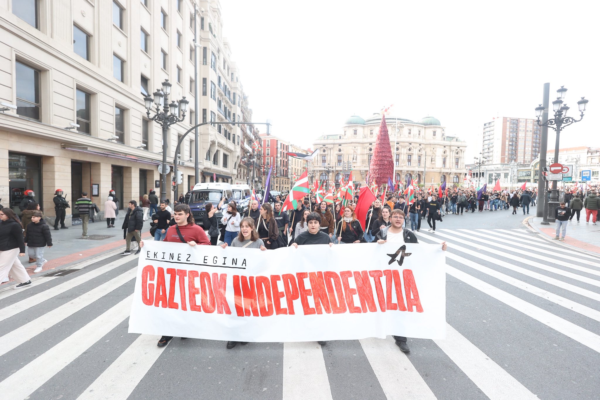 Ekinez egina, gazteok independentzia leopean burutu dute manifestazioa, ikurrinez, bandera gorri eta moreez lagunduta. Plaza Eliptikatik Zamudioko ateraino eginiko mobilizazioan aldarrikatu dute garaia dela "antolatu eta borrokatzeko". Ertzaintzaren presentzia nabarmena izan da ibilbidean zehar, batez ere EAEko Auzitegi Nagusiaren, Sabin Etxearen, Espainiako Itsa sKomandantziaren eta Israelgo Nyx katearen hotelaren parean.