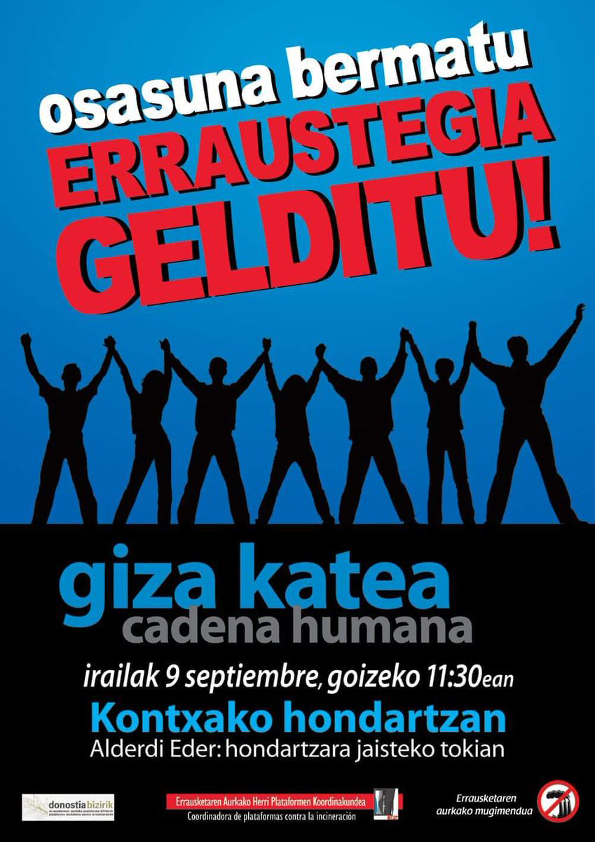 Testuinguru honetan, erraustegia geratzeko lehen ekimenak deitu dira dagoeneko iraila eta urrirako. Hasteko, Donostiako estropaden bigarren jardunaldi egunerako, irailaren 9rako, urte luzez egin ohi duten moduan, giza katea deitu dute 11:30etan Kontxa hondartzan Errausketaren Aurkako Mugimenduak, Errausketaren Aurkako Herri Plataformen Koordinakundeak eta Donostia Bizirik plataformak, “Osasuna bermatu, erraustegia geratu” aldarripean.