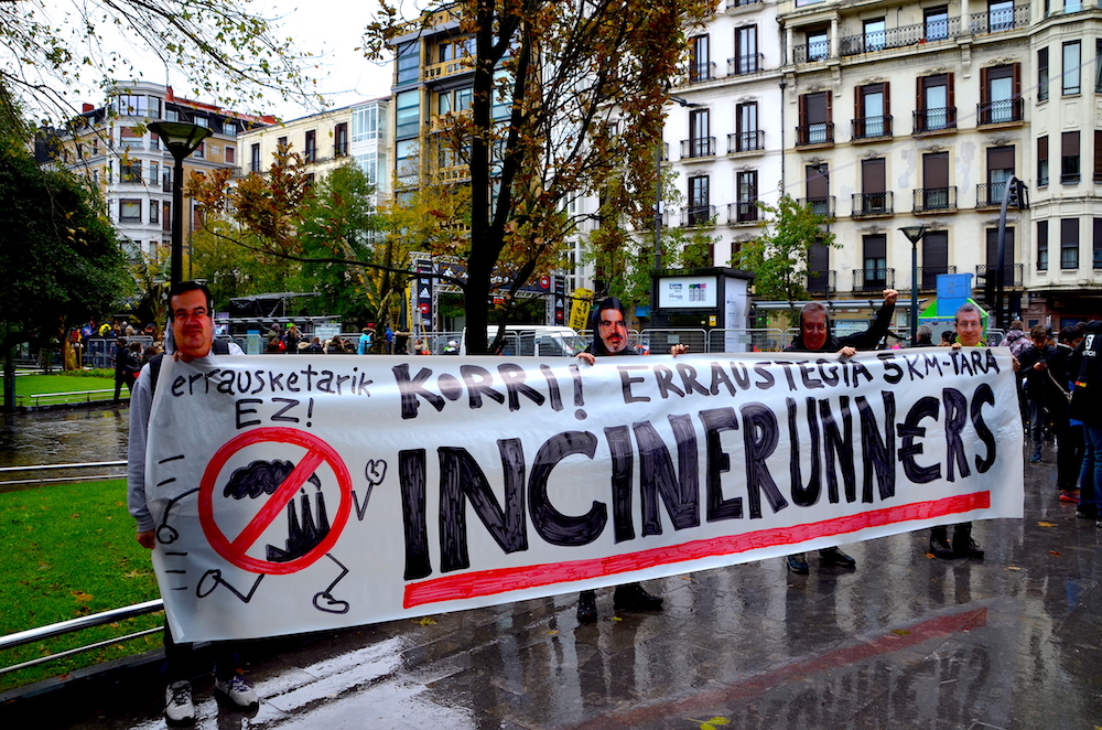 Bestetik, lasterketako azken korrikalariak Bulebarrera iristen ari zirela, agintari politikoez mozorroturiko lau ekintzailek agerraldi xelebrea egin dute helmuga parean. Eneko Goia alkatearen, Ernesto Gasco alkateordearen, Markel Olano ahaldun nagusiaren eta Jose Ignacio Asensio Ingurumen diputatuaren maskarak zeramatzaten, eta baita “Incinerunners” zioen pankarta zabal bat ere, gainean hurrengo mezua zuena: “Korri! Erraustegia 5 km-tara”.