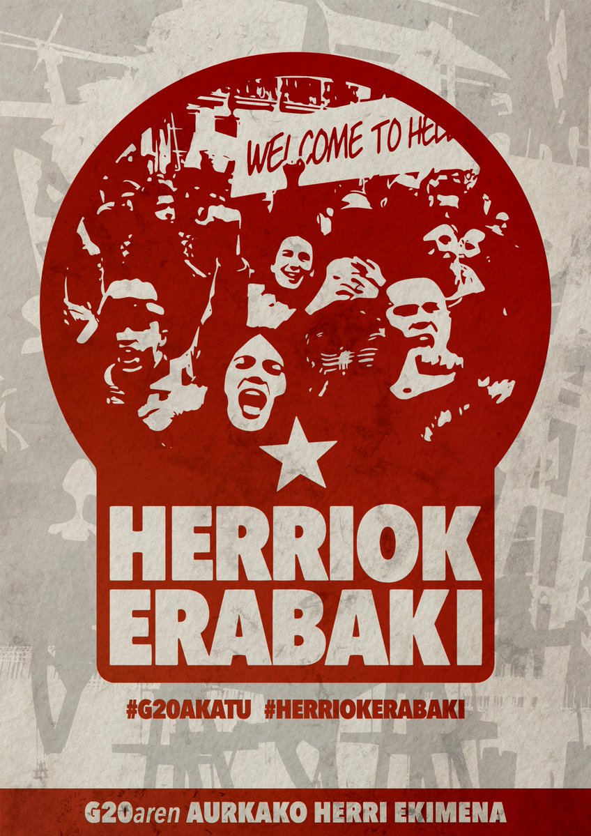 Hamburgon (Alemania) uztailaren 7 eta 8an egitekoa den G20ren gailurrean "herritarronak diren erabakiak gutxi batzuen interesak defendatzeko" hartuko dituztela salatu dute hainbat gizarte eragilek eta sindikatuk. G20ren "diktaduraren kontra esnatzeko", uztailean Euskal Herriko herrialde ezberdinetan antolatu dituzte mobilizazioetan parte hartzera dei egin dute.
