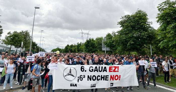 Mercedeseko ia 5.000 langileak grebara deitu dituzte sindikatu gehienek, bi multzotan: batetik, ELA, LAB eta ESK sindikatuek; eta UGTk eta CCOOk bestetik. Ekintza eta PIM sindikatuek ez dut deialdirik egin. Posizio ezberdinak badituzte ere, manifestazio bateratua egin dute greba deitu duten bost sindikatuek, goizeko 11:00etan Mercedes lantegitik abiatuta eta Gasteizko erdiguneraino.