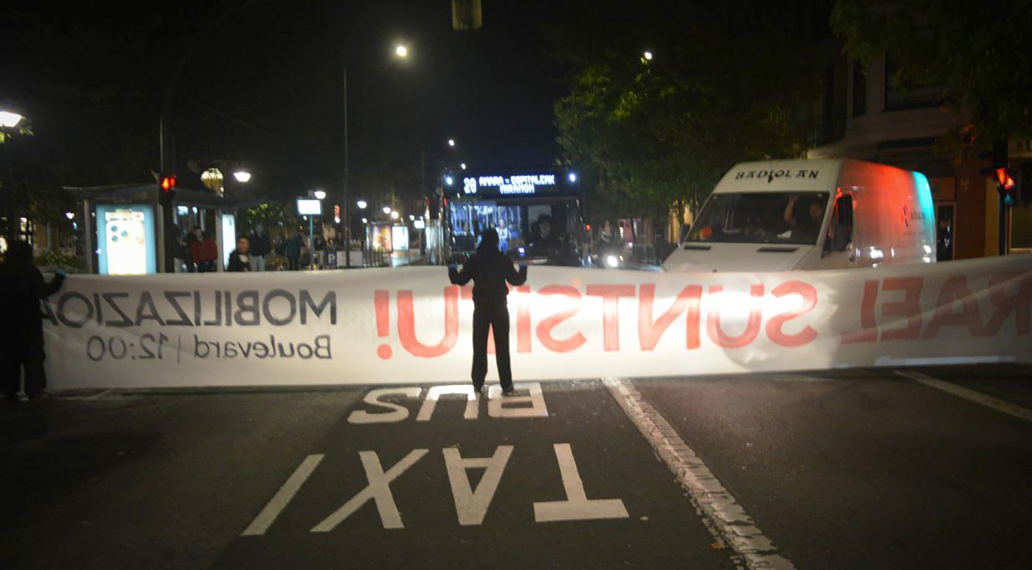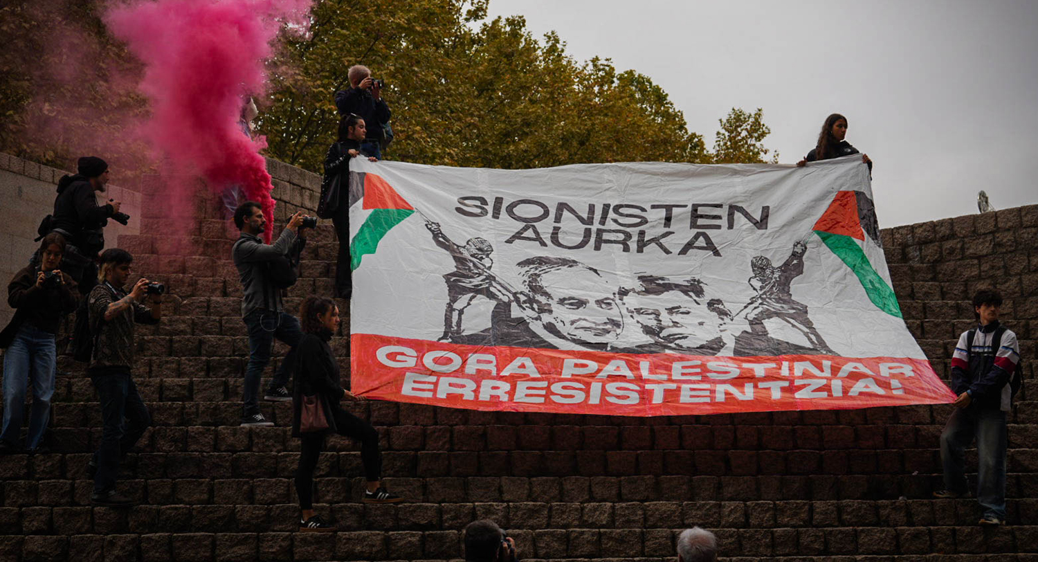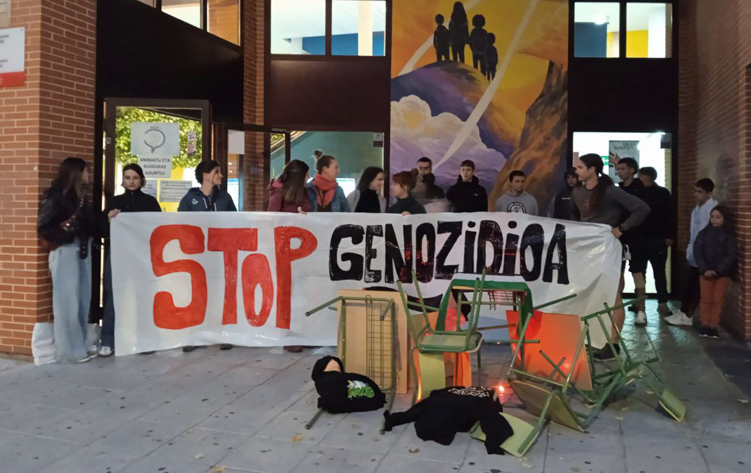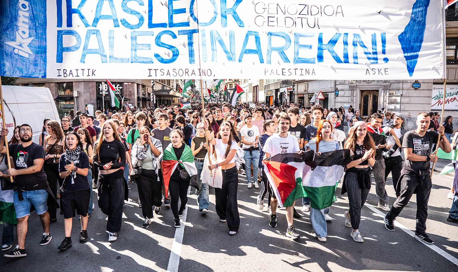 Ikasle mugimendua ere aktibo dago urriaren 15 honetan, eta goizean goizetik ikasleek piketeak eta bestelako ekintzak egin dituztela adierazi dio ARGIAri IAko kide Beñat Astizek. Ikasleen mobilizazio propioa antolatu dute eguerdian, hiriburuetan, eta azken mobilizazioetako diskurtsoa mantentzen dutela azaldu digu: palestinar erresistentziari elkartasuna adierazteak eta “Israelgo estatu sionista suntsitzeak” baino ez dutela ekarriko soluzioa. “Trumpen planak su-etena ekarri du eta lehen kolpean begi onez ikusten dugu, baina garbi dugu genozidioan eta kolonizazioan sakontzera datorren plana dela, ez soluzioa”.