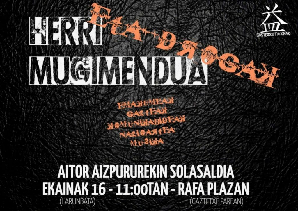 Behar baino gutxiagotan lantzen dugun eztabaida arantzatsua hau hauspotzeko, bost ikuspegi ezberdin jarriko dituzte mahaiaren gainean: emakumeak, gazteak, komunikazioa, nazioartea eta musika. 11:00etan izango da hitzordua, Rafa plazan, Gasteizko Gaztetxearen kanpoaldean.