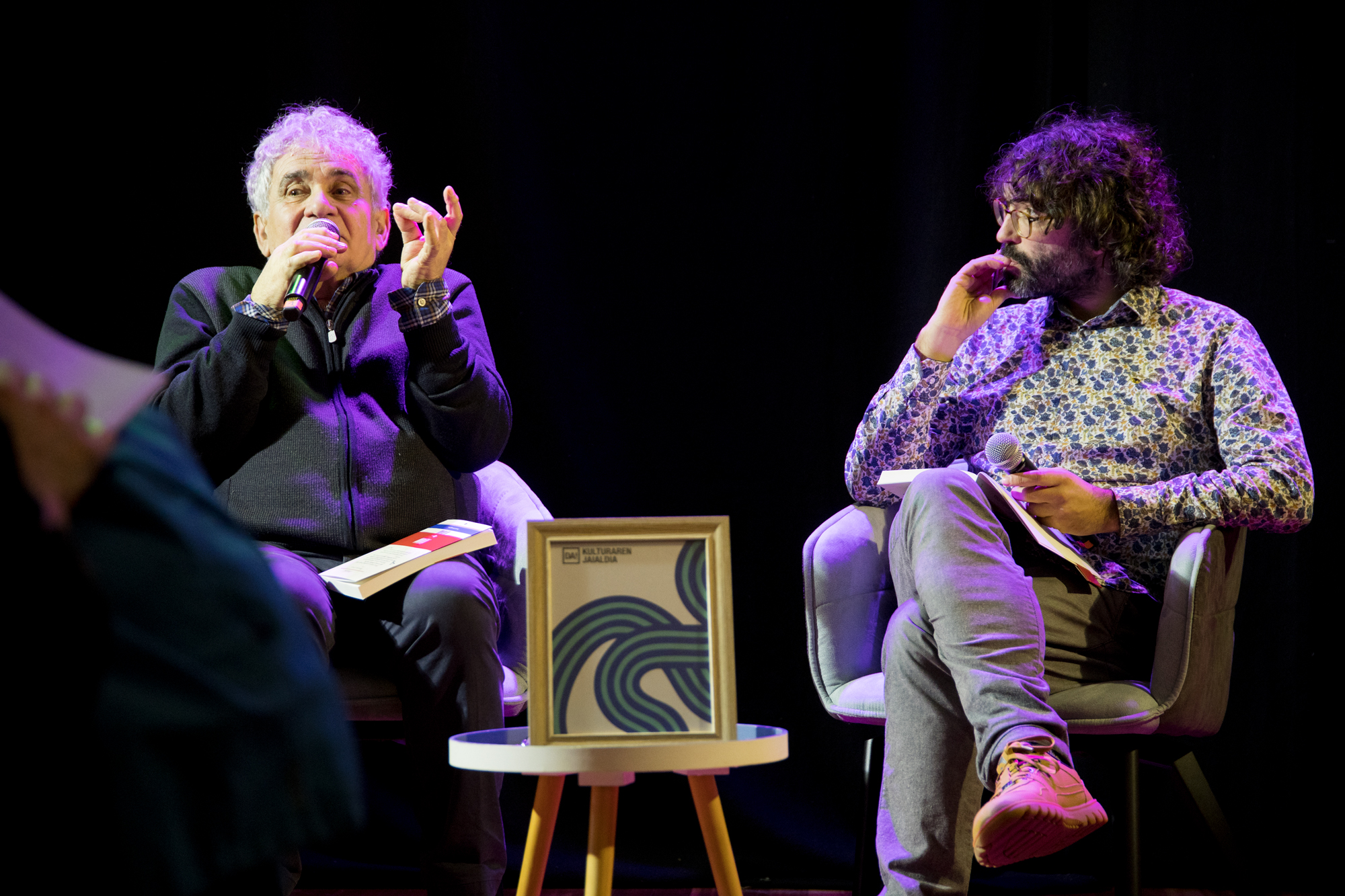 Iñigo Astiz kazetari eta idazleak egin ditu gidari lanak, baita azalpen lanak ere, zeren, nobela bera bezalaxe, harietatik joan eta harat eta honat aritu da Bernardo Atxaga aurkezpen saioan. Gogoeta eta pasadizo pertsonalak kontatu ditu, besteak beste, Enarak (Pamiela, 2025) eleberria abiatzen duen José Manuel Urtain boxeolariaren hiletan egon zela, nola joan zen ekitaldia eta nola oroitzen duen, haren hilobira 25 urte geroago joan zela eta ikusi zuena eta ikusi ez zuena...