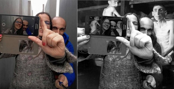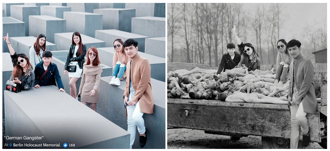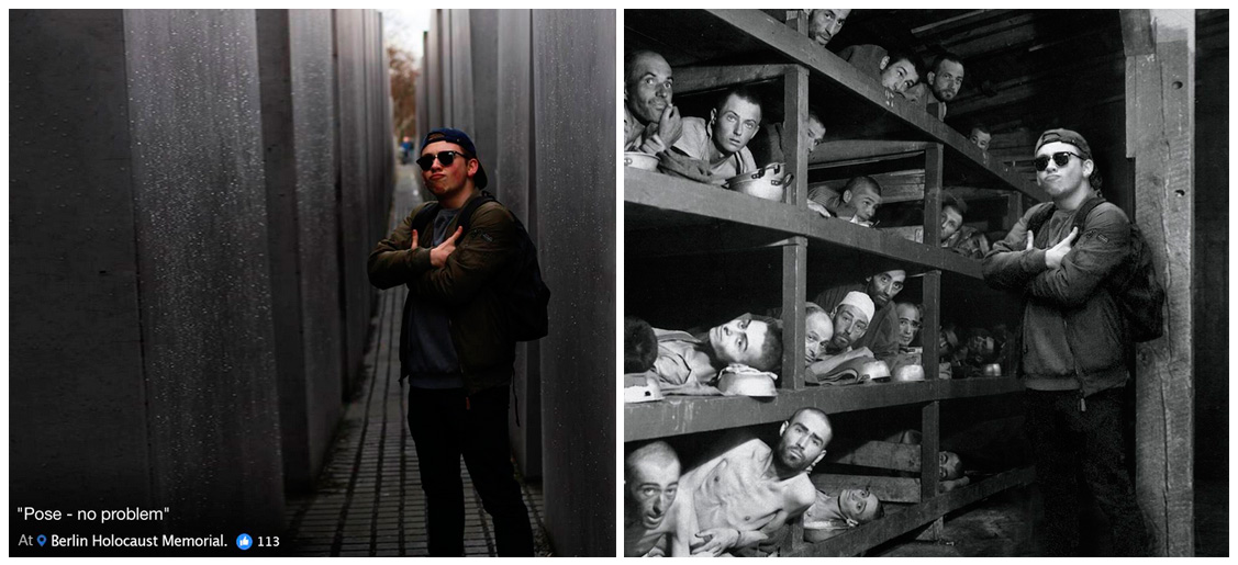 Inoiz Berlinen izan bazarete, oso litekeena da Holokaustoaren Oroigarria bisitatu eta irribarrez –edo pailazoarena egiten– agertzen zareten argazkia ateratzea. Bada, Shahak Shapira artista israeldarrak gisa horretako argazkiak arrantzatu eta nazien esparruetako irudi gordinekin nahasten ditu, turisten "errespetu eza" azaleratzeko.