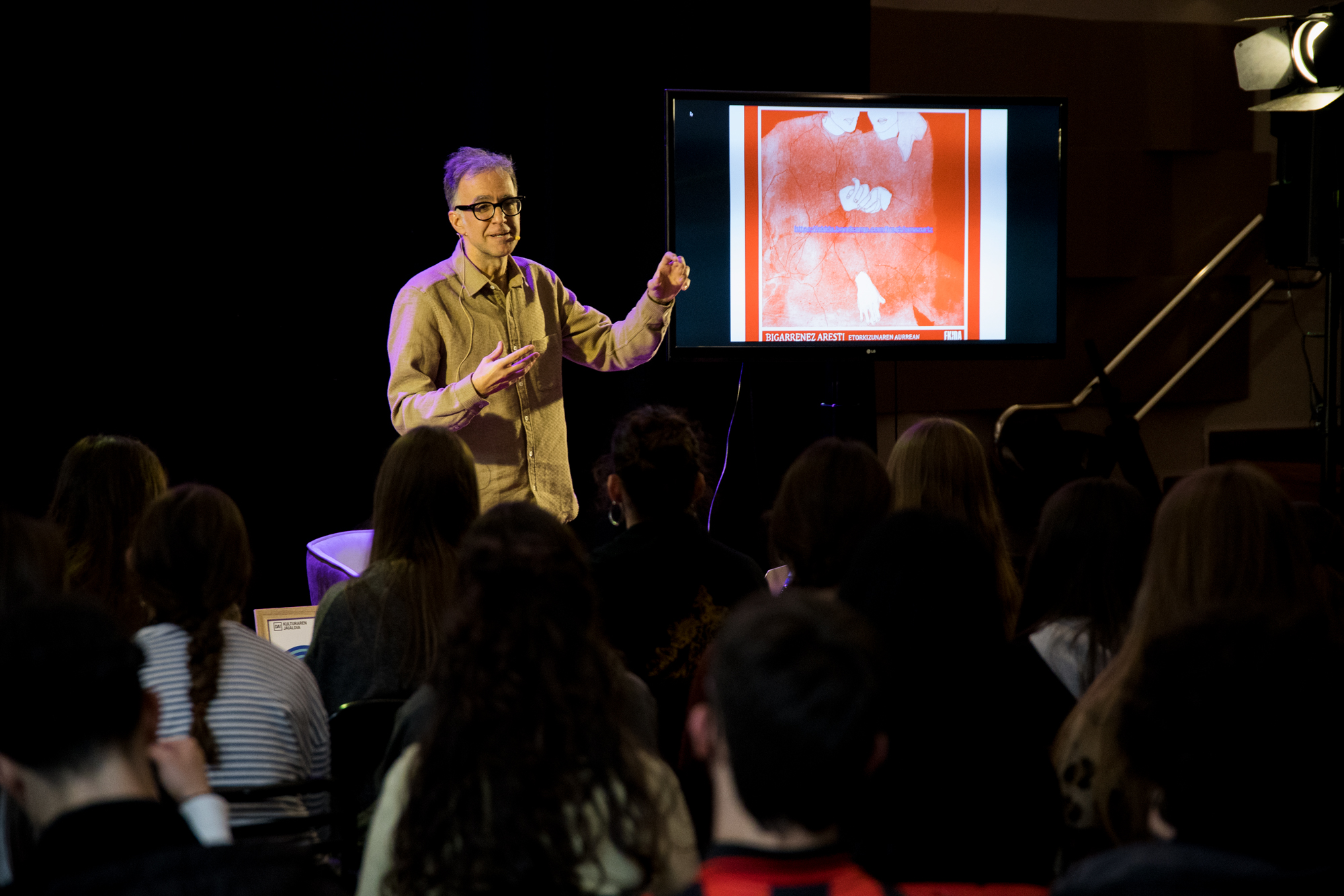 Hasiera batean ordu eta erdiko saio bakarra izan behar zena, ordubeteko txanda bi bilakatu dira, ikastetxe askok eman dutelako izena. Bakoitzean, 60-70 ikasle inguru egon dira Harkaitz Canoren hitzei eta gogoetei segika, adi-adi, baita eskua altxa eta parte hartzen ere. Canok berak aitortu du saioa hasi aurretik: “Tenplea hartzea zaila izaten da halakoetan, ordubetez ikasle ezezagunekin, ez baitakizu nolako saioa irtengo den”.