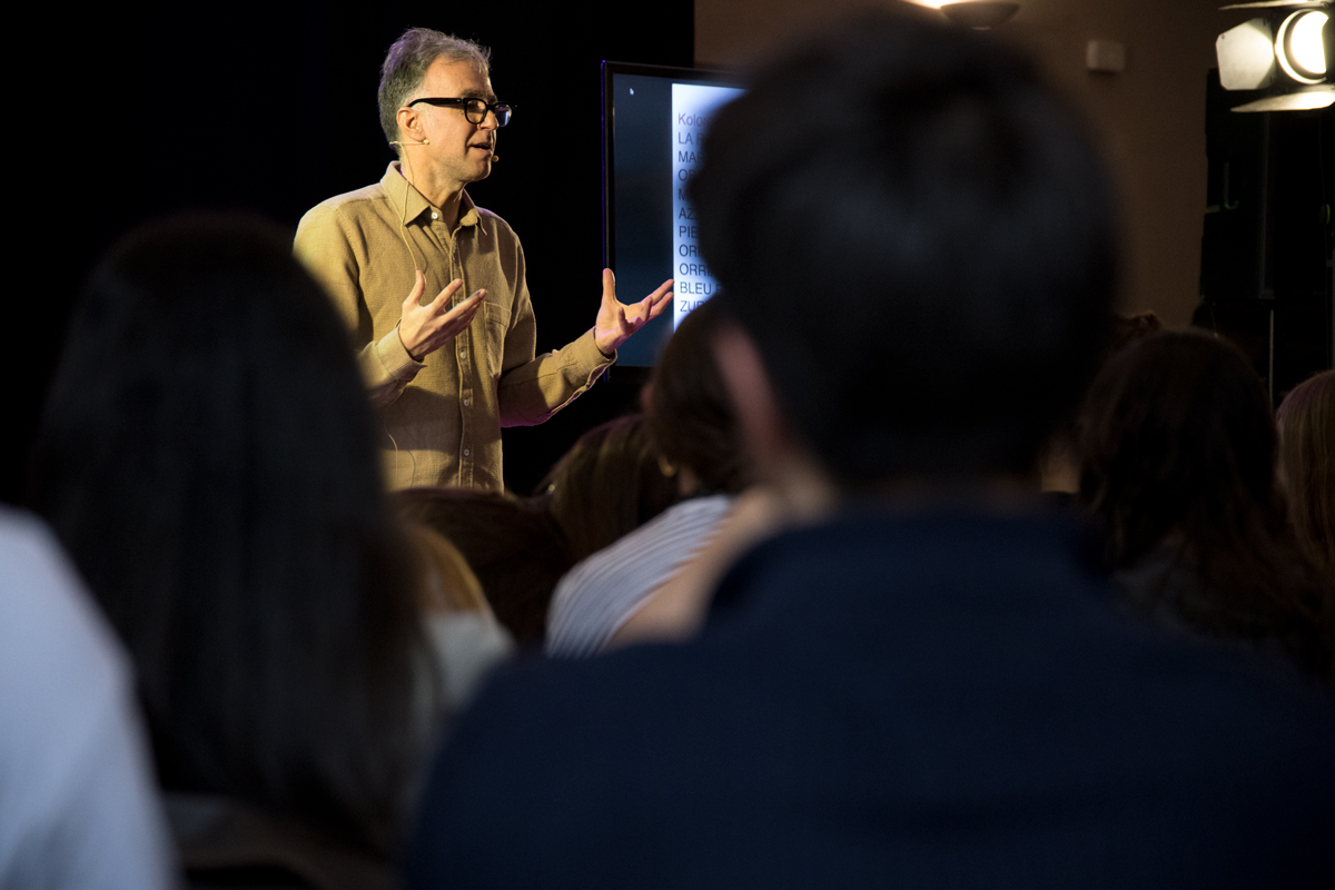 Izan ere, hitzek bizitzan duten garrantzian egin du azpimarra, eta orobat hortik ardaztu ikastaroa. Aspergarria badirudi ere, etimologian eta hitzen historian arakatzea inportantea dela esan die, “hortik gatozelako”, funtsean. Adibidez, La Roja: “Lehen, Bilbo aldean La Roja esaten bazenuen, Dolores Ibarruriri buruz ari zinen hizketan, hala deitzen zioten-eta; baina orain, azken bi hamarkadetan eman diguten matraka medio, La Roja entzutean Espainiako gizonezkoen futbol selekziora joaten zaigu burua”. Adibide barregarri ugari ere ipini ditu, eta hala, gauzarik absurdoenak ere mahai gainean ipinita, “etorkizuneko hiztegia zuek sortuko duzue” esan du. “Edo sortuko dizuete, zuek egiten ez baduzue”. Itzultzaileek ere sortzen dute; hori ere idaztea da. Boterea dute itzultzaileek: “Demagun, Fuerzas y cuerpos de la seguridad del Estado, itzuli euskarara; Danele Sarriugarteri galdetu, eta Espainiako Polizia edo Militarrak hitzak esango dizkizu, eta horrela erabiliko ditugu; gauza bera al dira? Hara hor zer botere duten itzultzaileek”.
