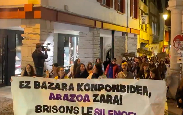 Bortxaketa kulturaren konplizeak zarete zioen, esaterako, Bilboko pankarta nagusiak –hura izan da manifestaziorik jendetsuena–, eta Ez bazara konponbidea, arazoa zara zioten Donostia, Gasteiz, Iruñea edota Baionakoek.