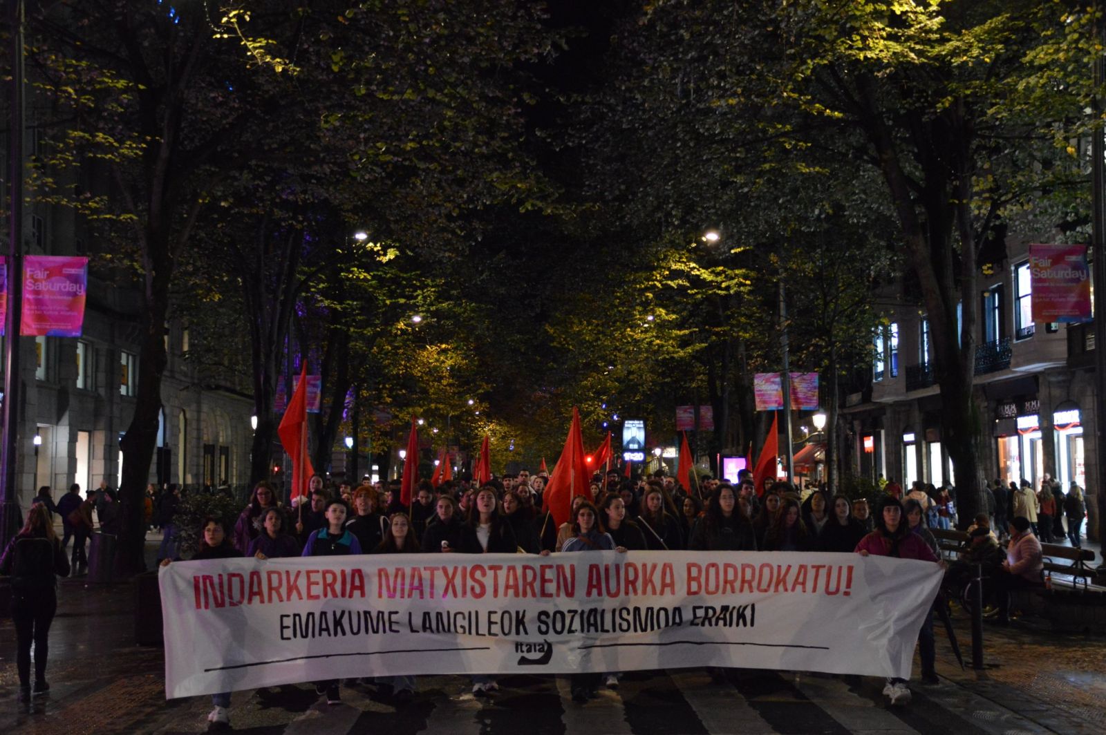Euskal Herriko hainbat udalerritan deitu ditu manifestazioak Itaia erakunde sozialistak. "Diskurtso matxista eta erreakzionarioen aurka, zein eraso ororen eta erasotzaileen inpunitatearen kontra borrokatzeko konpromisoz jarraituko dugu lanean", adierazi du. "Azaroaren 25 borroka eguna dela argi utzi nahi dugu: indarkeria matxistaren aurkako borroka lehen lerroan jarri eta matxismoarekin amaituko duen antolakuntza politikoa aldarrikatu nahi dugu", dio plazaratutako oharrean. "Oldarraldi erreakzionarioen eta kultura matxistaren zabalpenari aurre egingo diogula adierazi nahi dugu", gaineratu du. "Baina, era berean, politikari profesionalen hitzontzikeriez eta itxurakeriez nazkatuta gaude; izan ere, alde bateko zein besteko alderdiak gero eta politika autoritarioagoak aplikatzen ari dira. Gainera, promesa faltsuak egin dizkigute, kaleko mobilizazioa instituzionalizatu dute eta estatuko instituzioetan akomodatu dira. Horrela ezin zaio matxismoari aurre egin, ezta faxismoaren gorakadari ere".