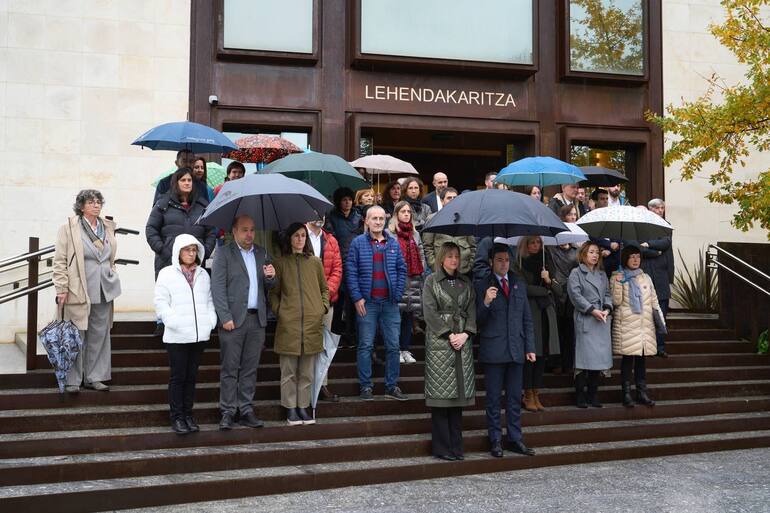 Erakundeek, bestalde, goizean egin dituzte elkarretaratzeak. Emakundeko zuzendari Miren Elgarresta EAEko Lehendakaritzan izan da: "Erakundeak, herritarrak, familiak, enpresak, ikastetxeak, komunikabideak, elkarteak... Indarkeria matxistaren prebentzioak lehentasuna izan behar du arlo guztietan", esan du. Indarkeria matxista ukatzen duten diskurtsoez ere aritu da: "Diskurtso horiek gero eta leku handiagoa hartzen ari dira, batez ere hedabide digitaletan, eta gazteria da horien publiko objektiboa. Erne egon behar dugu, baina ezin dugu ahaztu gure gizartearen gehiengoa, eta gure gazte gehienak, berdintasunaren aldekoak direla eta indarkeria matxista arazo larri bat bezala ikusten dutela. Emakumeen aurkako indarkeriarik gabeko gizarte baterantz aurrera egiten jarraitzeko indarra ematen digu horrek".