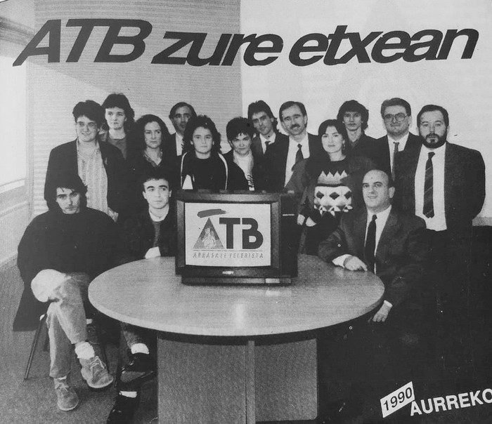 ATBko hasierako taldea, teknikariek eta aurkezleek osatua; Joxe Ramon Elortza eskuinean, jarrita (1990eko otsaila).
