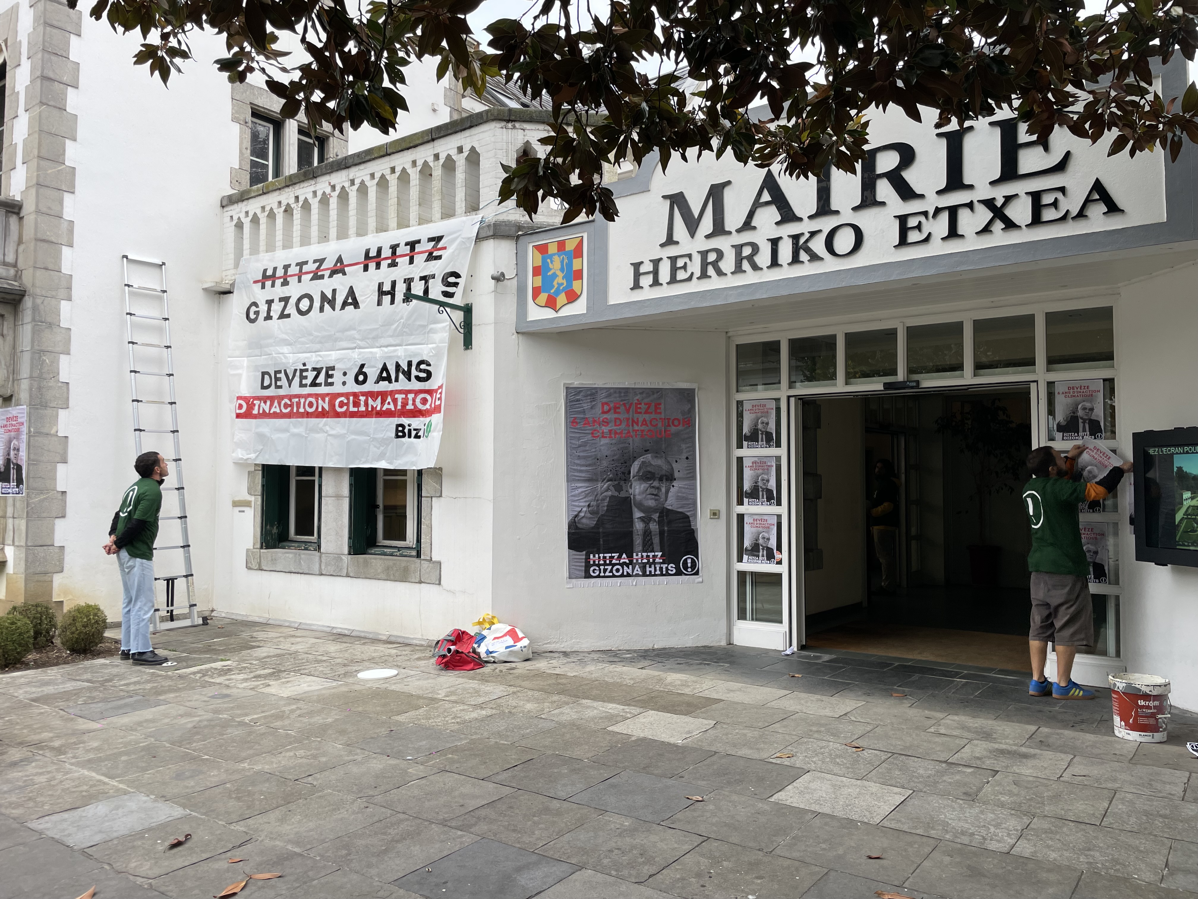 Asteazkenetan Biziko hogei bat ekintzailek irmoki salatu dute Christian Devèze Kanboko auzapezaren “klimaren arloko sei urteko geldialdia”, herriko etxearen aitzinaldea afixez estaliz.