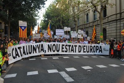 • ANCren (Kataluniako Biltzar Nazionalaren) gidaritzapean, ia bi milioi herritarrek Bartzelonako kaleak bete zituzten estatu independente izateko nahia aldarrikatuz. Eguerdian argi adierazi zuen Carme Forcadell ANCko buruak gaurko egunaren garrantzia, “Katalunian inoiz egin den manifestazio jendetsu eta garrantzitsuena” izatea nahi luketela esan zuenean. Baina antolatzaileak ere ezustean harrapatu zituen Bartzelona bete zuen jendetzak.