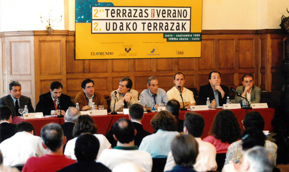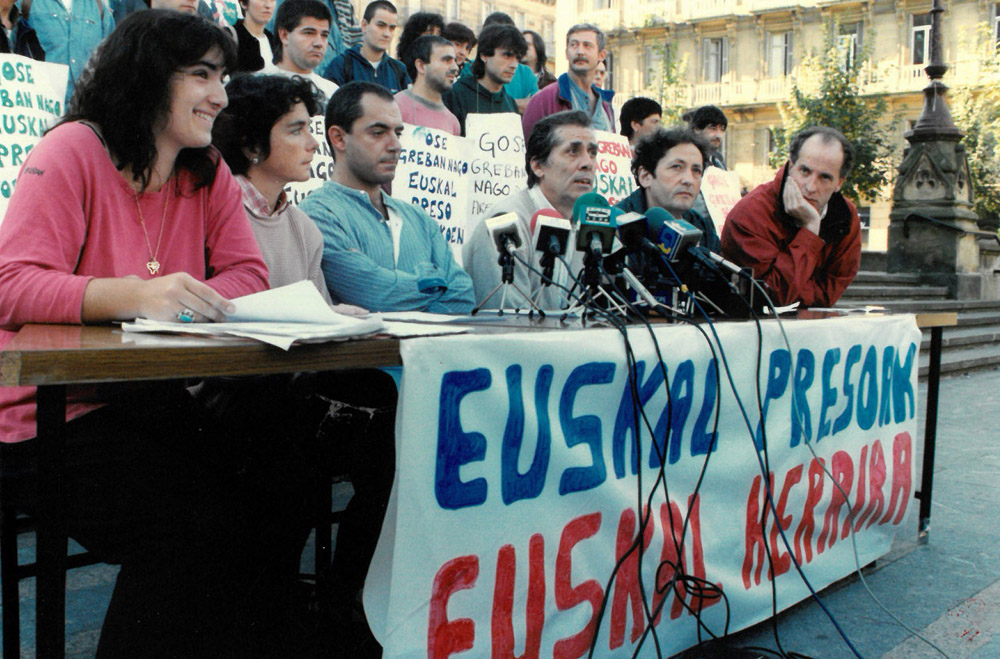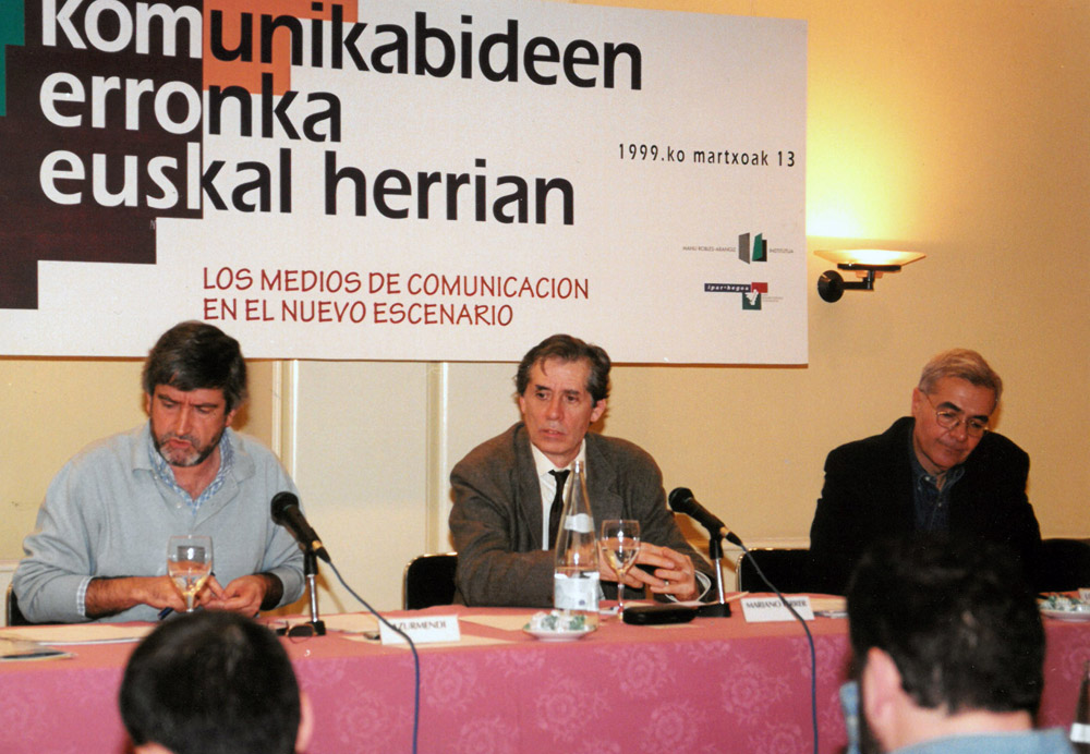 Politikaren arloan ere murgildu zen kazetaria, dela lanbideak eskatzen zion zereginetan, dela konpromisoagatik. Hurrenez hurren, euskal komunikabideetako langileen gose greba euskal presoek hurbilketaren alde 1996an (Argazkia: Alberto Elosegi / Argia artxiboa); Komunikabideen erronka Euskal Herrian jardunaldian eman zuen hitzaldian, 1999an (Argazkia: Monica del Valle / Argia artxiboa); eta politika mahainguru bat gidatzen 1999ko ekainaren 24an, 2. Udako Terrazetan (argazkia: Pablo S. Quiza / Argia artxiboa)