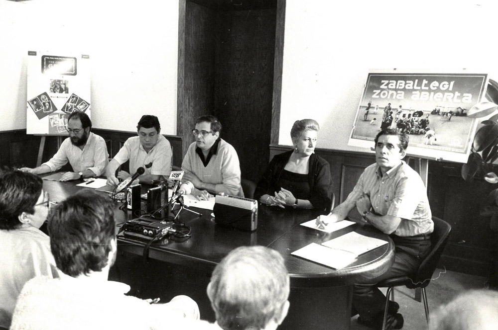 1986ko ekainaren 29an, Zinemaldiko prentsaurrekoan, besteak beste Diego Galan eta Pilar Olascoaga alboan dituela: