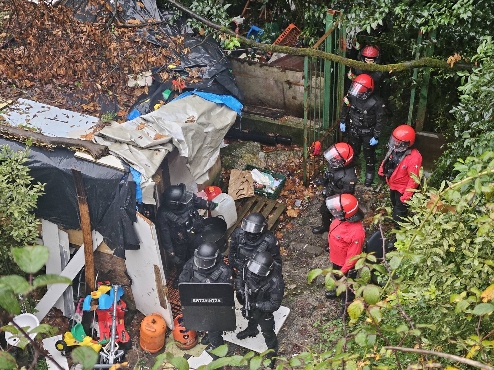 Ostegunean, goizeko lehen orduetatik Ertzaintzaren hamabost bat furgoneta, Espainiako Poliziaren lau auto, Donostiako Udaltzaingoaren lau furgoneta eta drone bat izan dira Martuteneko institutu zaharraren inguruan. Berria-k jakinarazi duenez, eraikinaren inguruan dauden, eta migratzaileak bizi izan diren txabola batzuk arakatu ditu poliziak. Sarrerak itxi dituzte, eta iturri beraren arabera, gutxienez hiru pertsona identifikatu dituzte. Bertatik 111 lagun desalojatzeko agindua zuten. Hala ere, gehienak jada ez zeuden eraikin barruan. Etxegabetze mehatxuaren aurrean, bertan bizi ziren gehienak asteazken arratsalde-gauean eta gaur goizeko lehen orduetan joan behar izan dira eraikinetik, Poliziaren etxegabetze bortitz baten zain egon gabe.