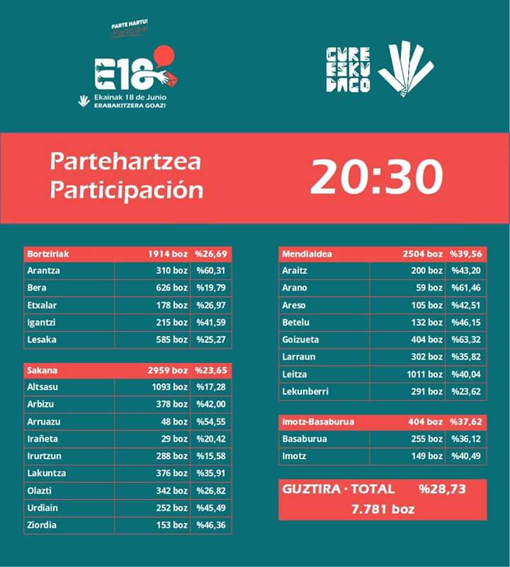 Igandean Bortziriak, Imotz-Basaburua, Sakana eta Mendialdeko 24 herritan 27.095 herritarrek izan dute botoa emateko aukera, eta horietatik 7.781ek eman dute.