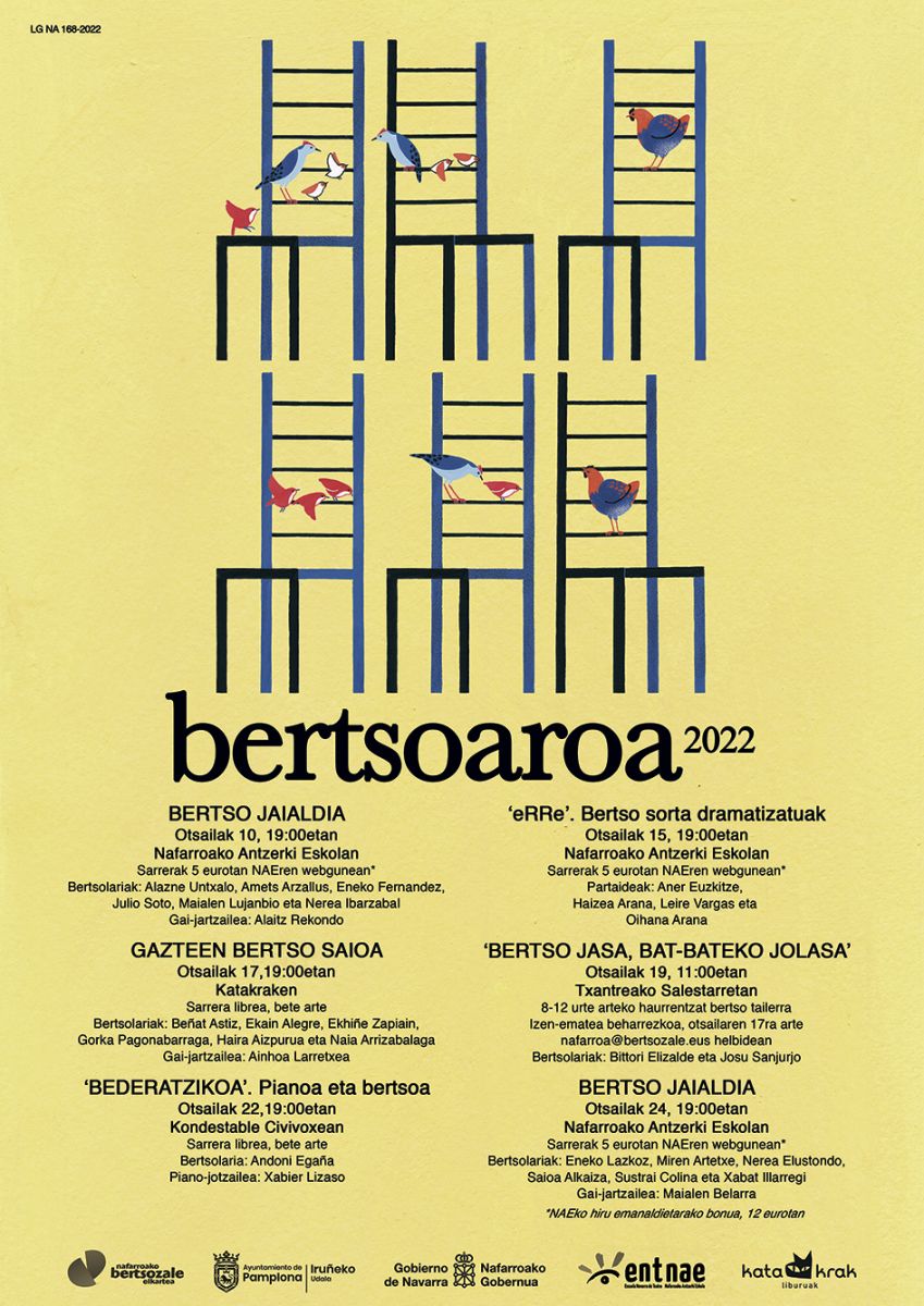 24 bertsolarirekin ekingo dio bideari Nafarroako Bertsolari Txapelketak. Auritzen izango da, urriaren 4an; eta, lehen aldiz, Nafarroa Arenan izango da finala, azaroaren 29an. Saio guztietarako sarrerak salgai daude dagoeneko, Bertso Sarrerak atarian.