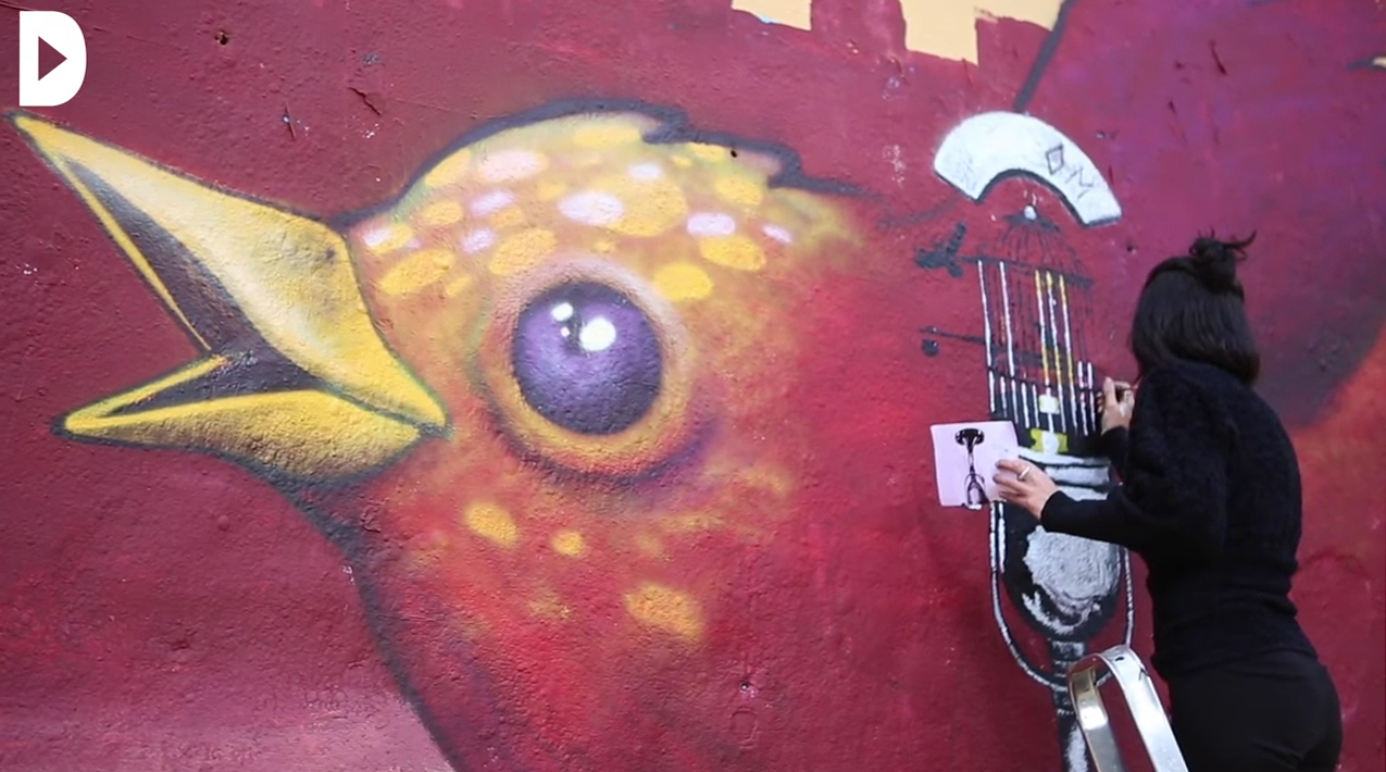 "Adierazpen askatasuna" marraztu dute hogei metroko horma batean. Deigarriena Roc Black Block-ek egin duena izan da, eta ezaguna da hirian egin dituen beste mural batzuengatik: honek Juan Carlos erregea marraztu du. Directak jaso du muralgile honek gertuko jendeari eman dizkion azalpenak: hainbat lan uztartzea lortu duela, horrela nahi duena eginez bizi ahal izateko, legea urratzen aritu behar izan gabe. "Nahiko lasai ari da, gainerakoak baino mantsoago doa eta bere trazoa gehienena baino abilagoa da, bizitzeko muralak egiten ohituta baitago" kontatu du Júlia Bacardit kazetariak Directan.
