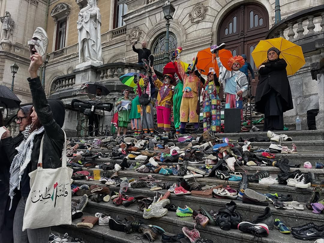 Jesusen Bihotza plazatik 17:30 ean hasi den mobilizazioak milaka pertsona bildu ditu. Horietako askok zapatak eraman dituzte, bonben, balen edo Israelgo Estatuak eragindako goseteen ondorioz hildako haur palestinarrak oroitzeko. Udaletxean mobilizazioa amaitzean airera bota dituzte zapatilak sirena soinu artean.