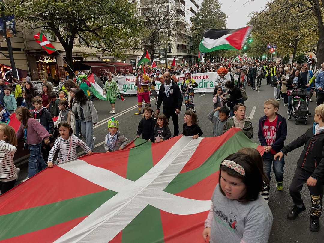 Haurrek protagonismoa handia eduki dute manifestazioan zehar. Beraiek izan dira manifestazioaren buru palestinar bandera eta ikurrinarekin. Txikiak jarraituz, pailazoak eta Palestinan hiltzen dituzten horiek gure haurrak ere badira lelodun pankarta eutsiz hezkuntza komunitateko ordezkariak.