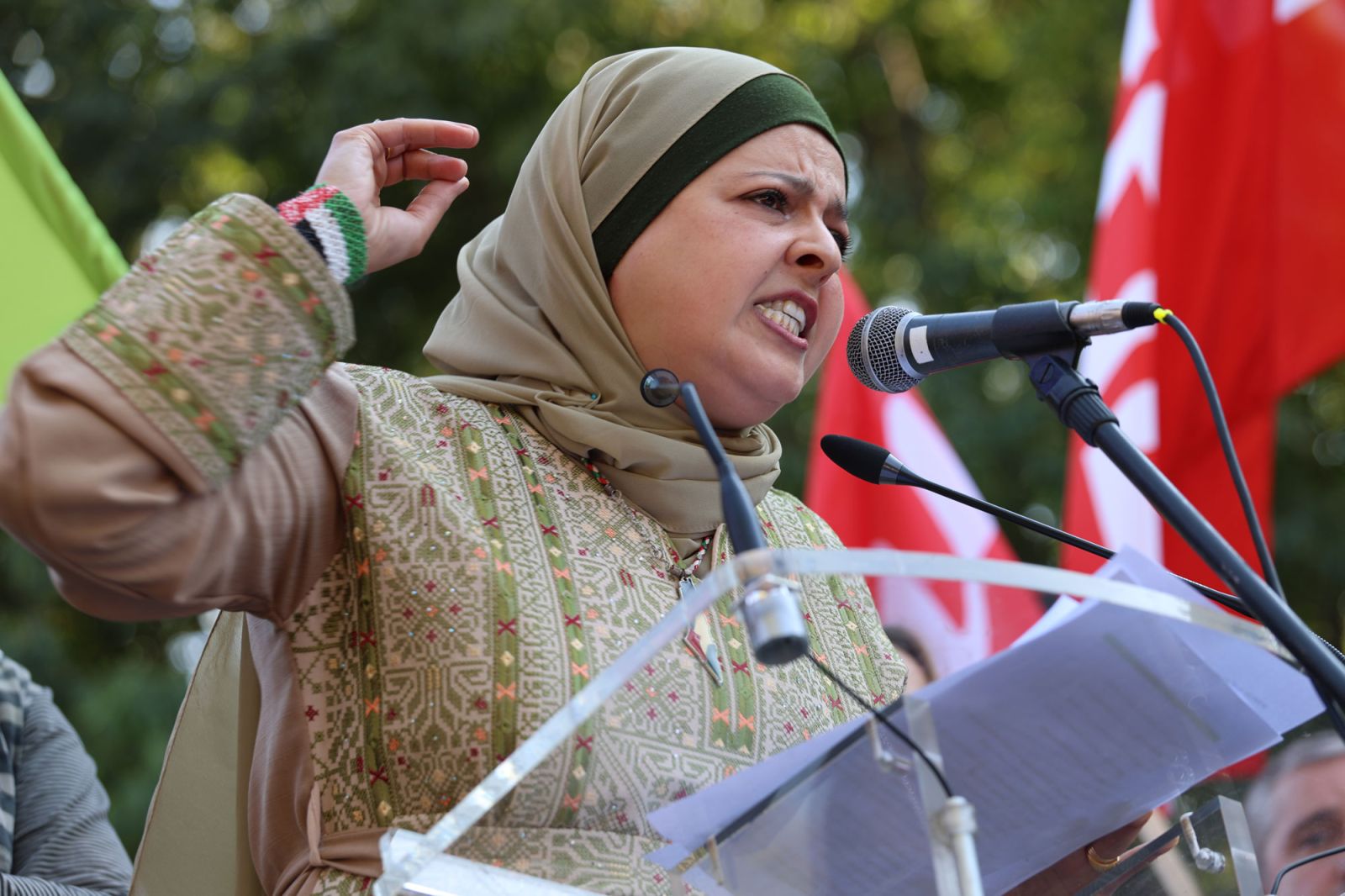 Manifestazioaren amaieran jendetzari zuzendu zaion emakume palestinarrak esan du hogeitaka urte daramatzala bizitzen Nafarroan eta sentitzen duela herrialdearen elkartasuna: “Bada ordua gerra eta genozidioa gelditzeko, eta Palestina munduko beste edozein herrialde moduan askatasunean bizi dadin. Eta Gazan, senti dezatela beraiekin gaudela”. Gaurko mobilizazioa Palestinaren aldekoa dela azpimarratu du, “baina ez hori bakarrik, mundu justu eta hobeago baten aldeko aldarria” ere badela azpimarratu du.