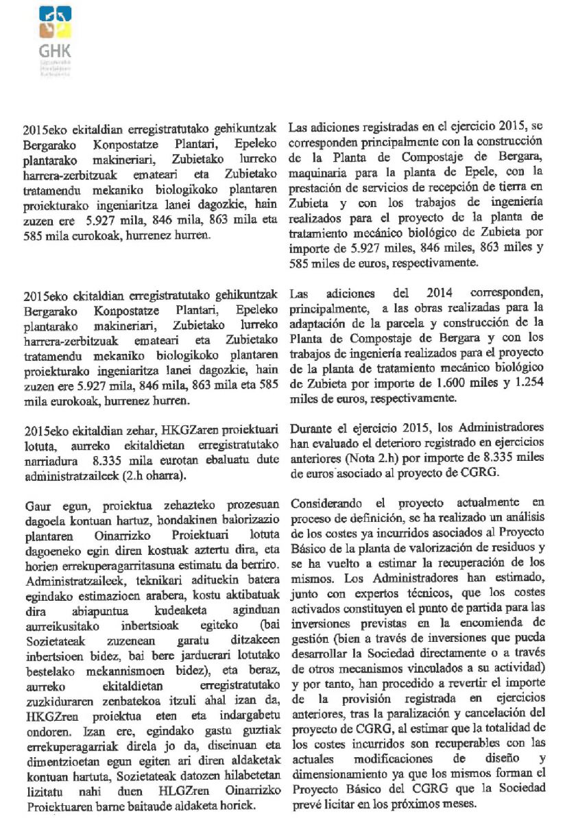 "Txostena egiteko erabili dugun dokumentazioa, GHK-k berak batzarrean onartu dituen diru-kontuak baino ez dira. Hauek irakurri, NIC (gaztelerazko siglak) nazioarteko kontabilitate arauak aplikatu eta erraustegia egiteko atera dituzten pleguak irakurtzea eta oinarrizko matematika aplikatzea (ez dago logaritmorik ez ariketa konplexurik. Batuketa eta kenketa egitea nahikoa da). Oso gauza sinplea da", azaldu du txostenaren egileak.