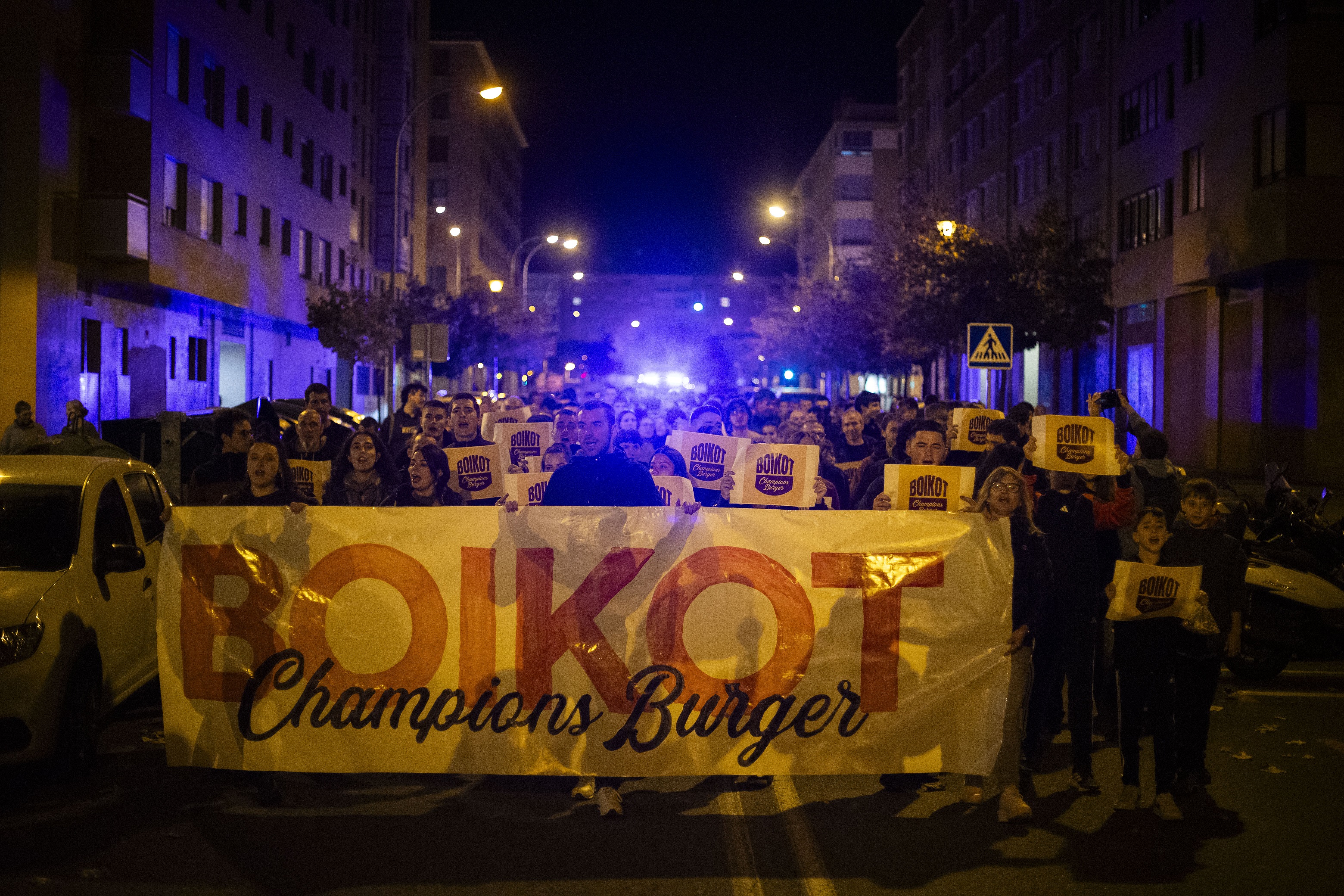 Boikot Champions Burger lelopean gurutzatu zituen auzoko kaleak manifestazioak. "Ez dugu negoziora eta turismora bideratutako hiri-eredua nahi, ez dugu espazio publikoa enpresa handien interes pribatuetara bideratzea nahi", azaldu zuten: "Runa parkean azken hilabeteetan sanferminetako barrakak, motorrak, abere-azoka, txirrinda buelta eta oraingo hanburgesak izan ditugu. Beti ere bizilagunen ahotsak eta kexak entzun gabe".