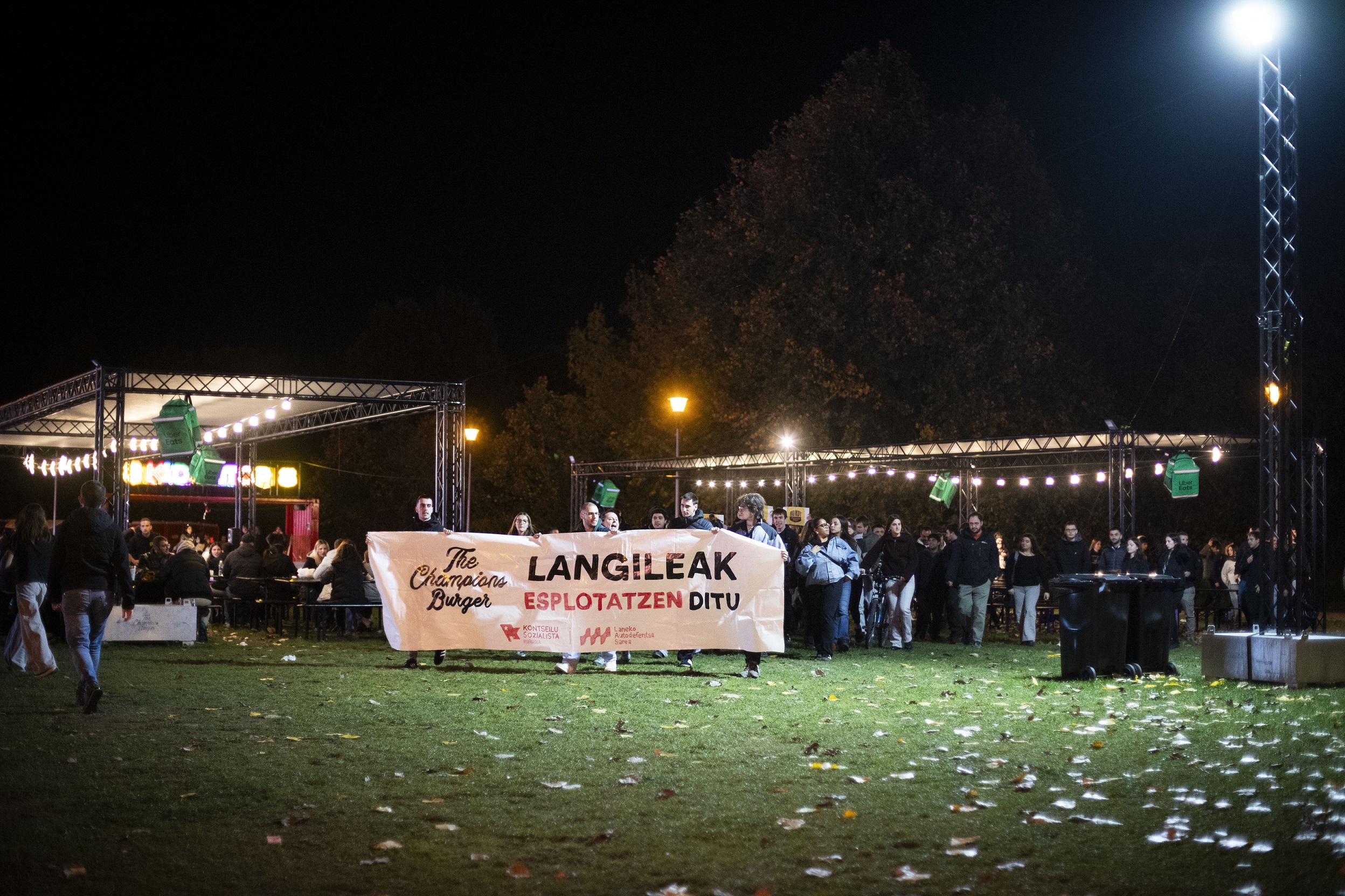 Iruñerriko Laneko Autodefentsa Sareak (LAS) ere salatu ditu azken egunetan makroekitaldiko lan-baldintzak: "Iruzurrezko kontratazioa, egun batetik besterako deiak, osorik ordaintzen ez diren lanaldiak, baldintzen funtsezko aldaketak abisurik eta kontsultarik gabe...". LASek, hain zuzen ere, protesta zaratatsu bat egin zuen aurreko astean jaialdi barruan, The Champions Burger: langileak esplotatzen ditu zioen pankarta batekin. Ekimeneko lan-baldintzak salatzeko esku-orriak bota zituzten manifestariek espazio osoan zehar.