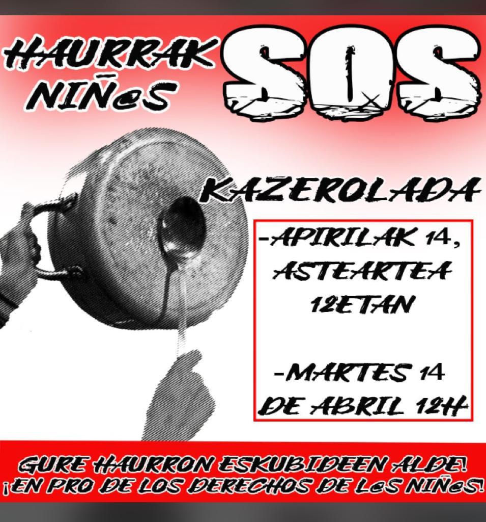 Sare sozialen bitartez ere proposatu da, antolatzailerik zehaztu gabe, gaur 12etan eltze-jotze bat egitea "SOS Haurrak, gure umeen eskubideen alde" lelopean.