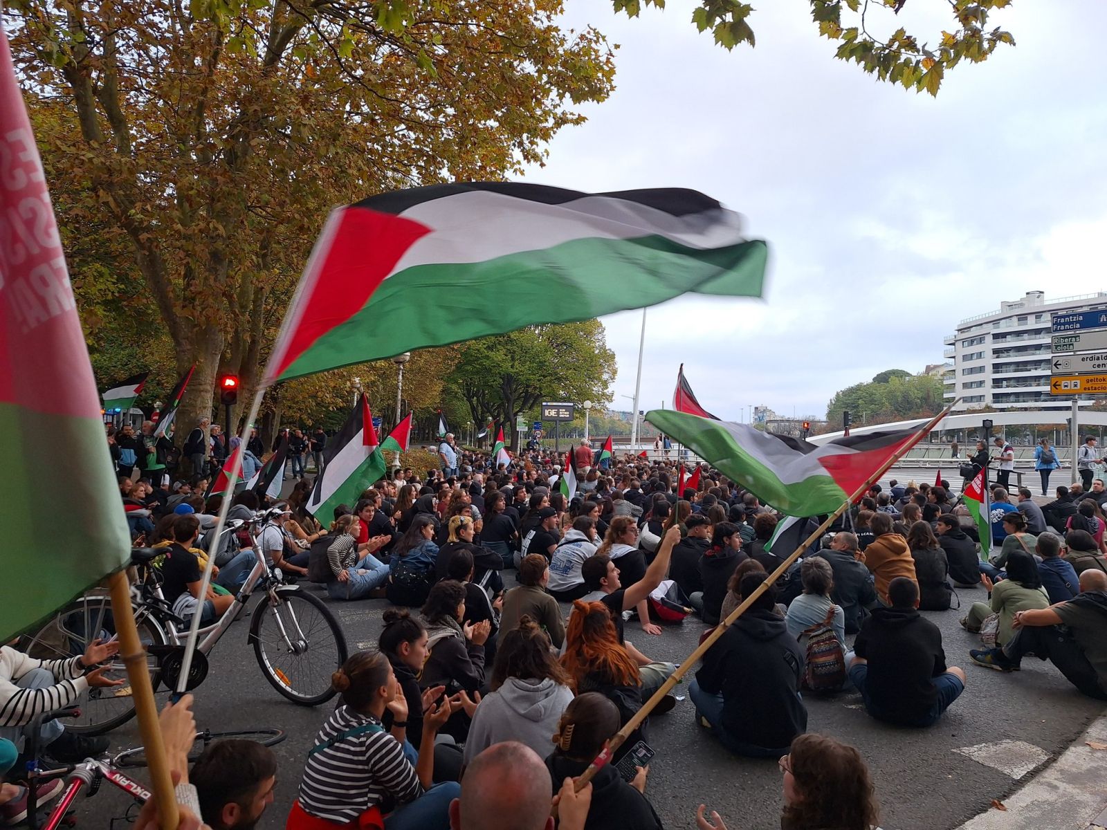 Espainiako Poliziak manifestazio desegin du, eta gomazko pilotak jaurti ditu; hala salatu du Palestinarekin Elkartasunak 19:25ean.