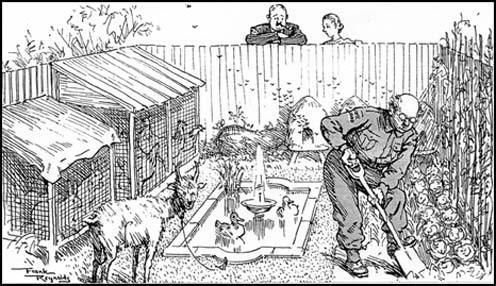 Etxe Zuriaren aurreko lorategian 1943an barazkiak erein ziren, denen eredu. AEBetan 20 milioi ortuzain berri saiatu zen lan berean, eta bertako beharren %30-40 horietan ekoiztu zen, benetako nekazarien fruituak Britainia Handira edo Errusiara bidali ahal izateko.
