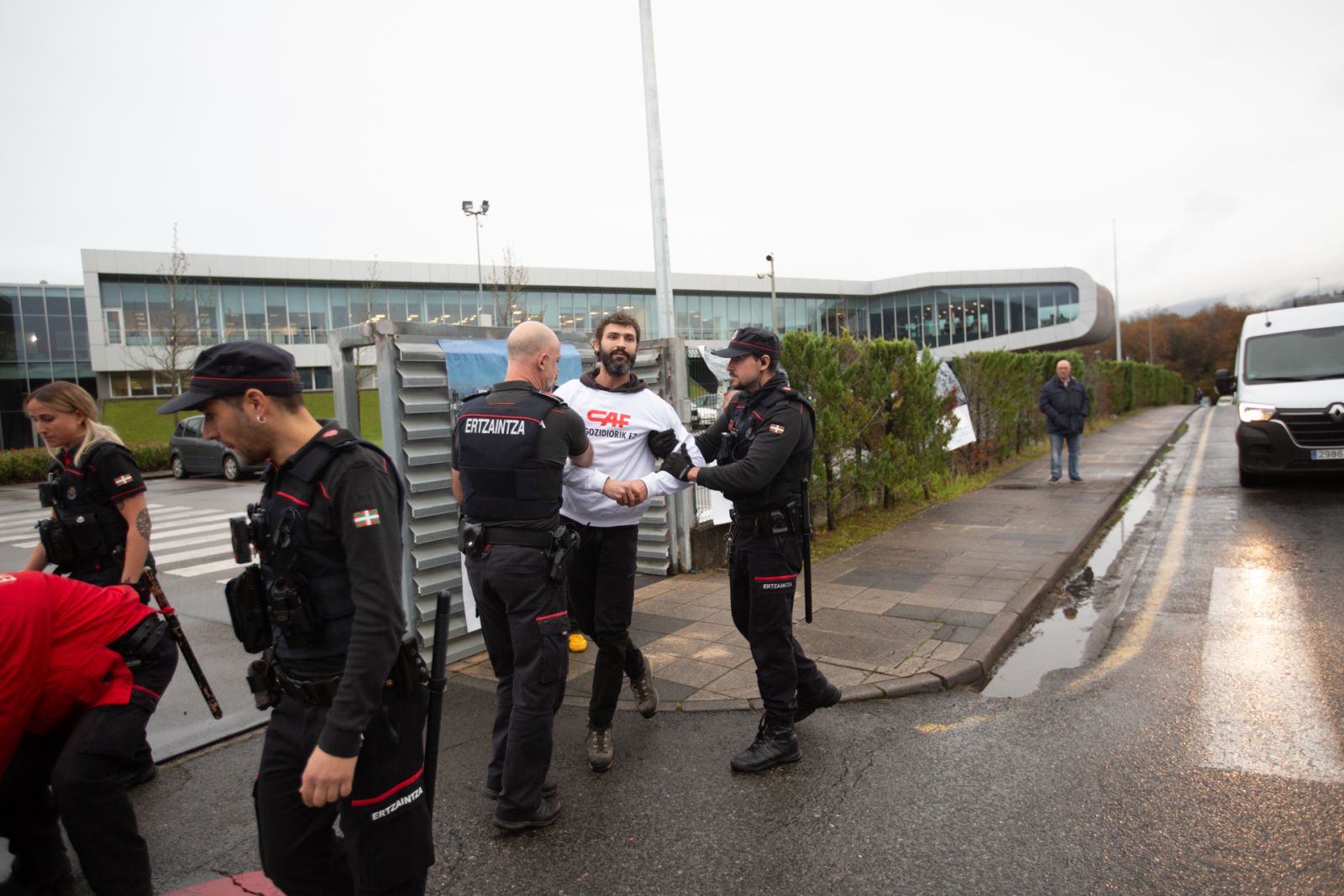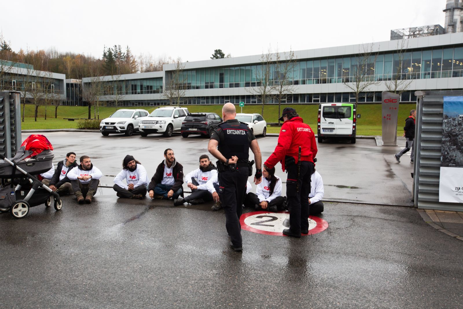 Enpresa parean jarri bezain pronto, liskarrak hasi dira segurtasuneko langileekin, eta horiek Ertzaintzari deitu diote. Ertzainek bertaratutakoak identifikatu dituzte, eta ordu eta erdiren buruan sakabanatu da bertaratutako ekintzaileen taldea.