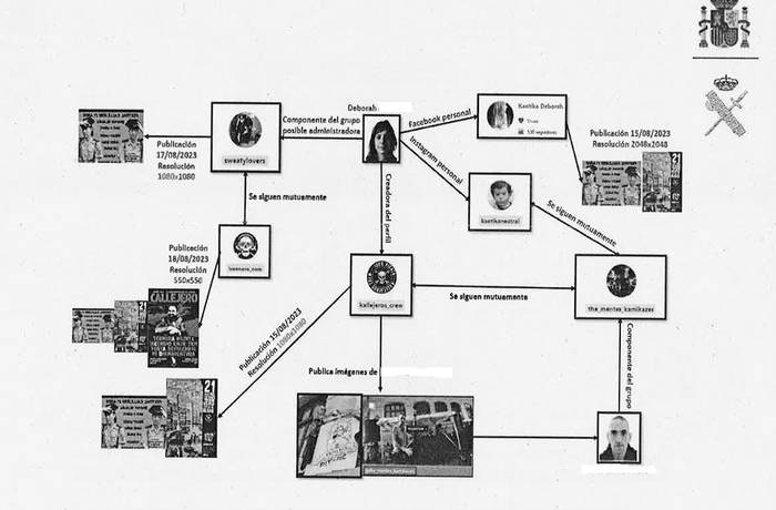 Deborah: Eta ez hori bakarrik, gure Instagram kontuetan dauden kartel guztiak ere. Guardia Zibilarena, Erregearena… guztiak. Guk azaldu genien guk egindakoek gure sinadura -gure logoa- dutela, besteak zabaltzen ditugu. Zabalpen hutsa da.