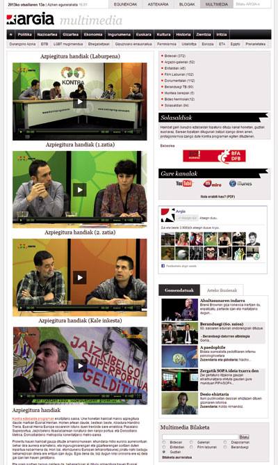 Gero eta ikus entzunezko material gehiago dago sarean sakabanatuta, eta horregatik, biltegi baten falta ikusita, bilaketa eta hautaketa lana egitea erabaki dugu, gogoetarako ikus-entzunezko materiala eskuragarri jarri asmoz. Gai zehatzei buruzko monografikoak jasoko ditugu, denak euskaraz ala euskarazko azpidatziekin. Dagoeneko, kanal horretan 100 bat bideo daude ikusgai, besteak beste, Euskararen kontrako diskurtsoa neutralizatzeaz, Emakumea eta kartzela, Norvegiako Atzerri ministroa elkarrizketaren defentsan, EAJ vs. EH Bildu, Haizea nola ustiatu nuen, Nafarroa post-UPN. Noiz, nola, norekin?, Bikoizketa vs. Azpitituluak edo Bilboko Aste Nagusiaren historiaz batzuk aipatzearren eta gaiak zein anitzan diren ikus dezazuen.