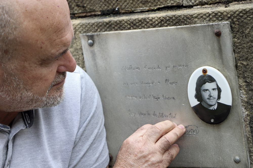 Angel Otaegiren hilobia Nuarben, ikurrina eta loreekin. Poliziek oztopo ugari jarri zituzten fusilatuen gorputzak