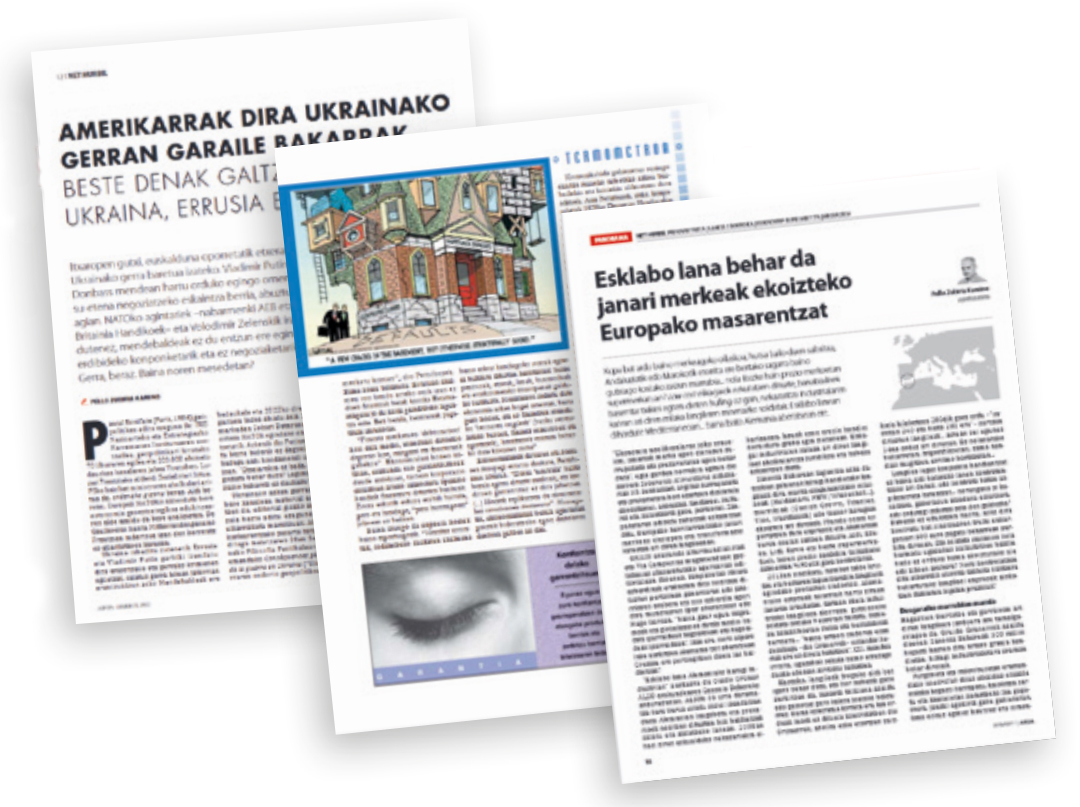 Bi muturreko joera oker antzematen ditut. Hainbat krisiren arteko inoizko gurutzaketa nahasiena bizi dugun irudipena zabaltzeko interesa batetik, eta arazo guztien oihana krisi ekonomikoaren zuhaitzarekin estali nahia bestetik. Izan ere, ez da ahantzi behar medioak bozgorailuak direla. Interesa dutena azpimarratzeko bolumena igo egiten dute eta estali nahi dutena isiltzeko jaitsi. Egun osoan krisi ekonomikoa gora eta behera dabiltzala iruditu arren, krisi ekonomikoaren ikuspegi jakin batez baizik ez dira ari. Noiz aipatzen dira bankuen ankerkeriak? Noiz biluzten da finantza sistema? Irakurri duzu sistematik irteteko asmorik? 2008ko krisi basatiaren ondotik denak lehen bezala jarrai dezan utzi dugu. Ikusi besterik ez dago, merkatuetan finantza tresna deribatuak eta truke operazioak biderkatu egin dira. Hori ez da hedabideetan agertuko, baina horrek ez du esan nahi, ez gertatzen ez denik, ez gertatzen dela ez dakigunik. Askatasuna fakturak norberak ordaintzetik hasten da, ordea, eta hedabide handiak fortuna handiagoen esku daude.