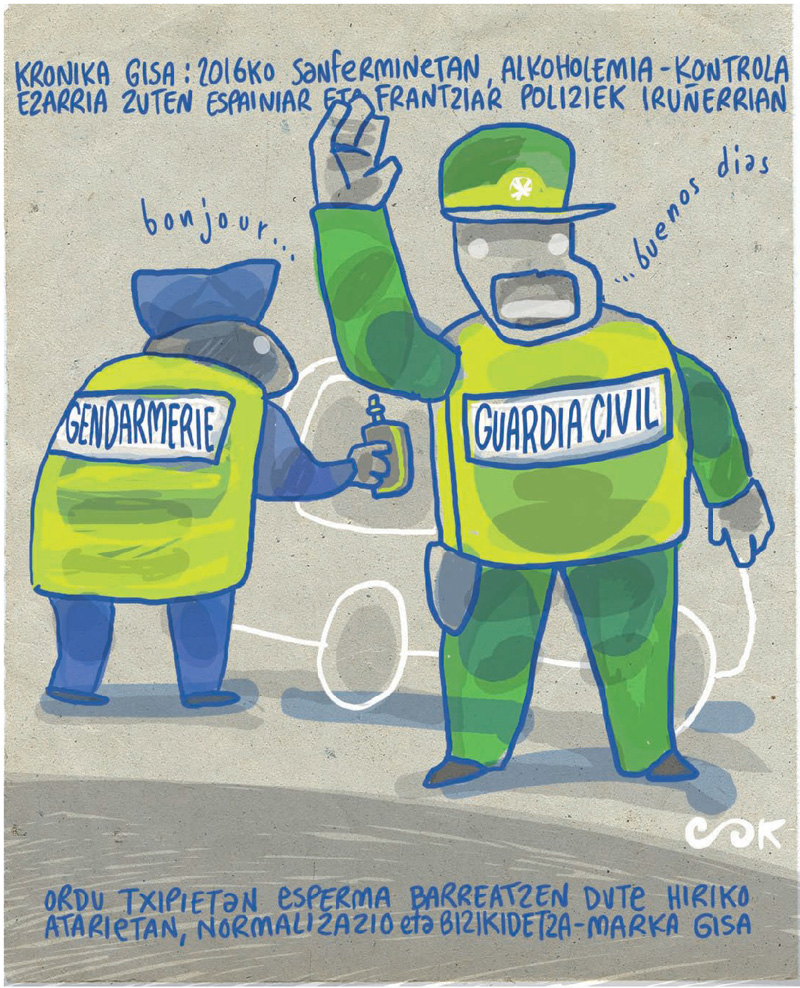Kronika gisa: 2016ko sanferminetan, alkoholemia-kontrola ezarria zuten Espainiar eta Frantziar poliziek Iruñerrian