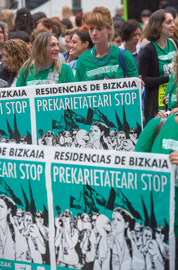 Langileen %92 emakumezkoak dira Bizkaiko zahar-etxeetan, ELAren datuen arabera. Gizarte eragileek maiz salatu dute sektore feminizatuek dituzten baldintza prekarioak, gizonezkoak nagusi diren lan esparruekin alderatuta. “Emakumezko asko dauden sektoreetan nagusi dira aldi baterako kontratuak, edozein unetan lanerako prest egotea, soldata apalak eta ezkutuko ekonomia”, azaldu du Ander Akarregik.