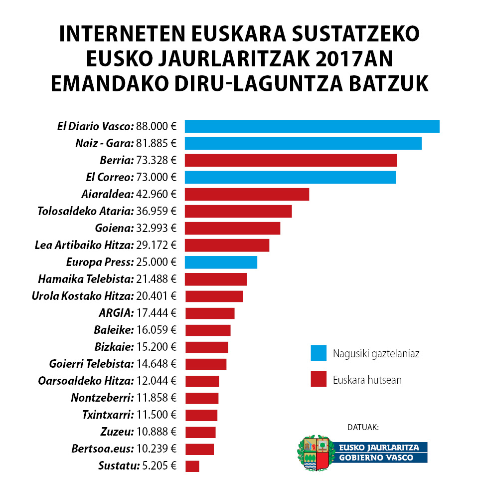 Bost aldiz diru gehiago Jaurlaritzak ‘El Diario Vasco’-ri ARGIAri baino “Interneten euskara sustatzeko”